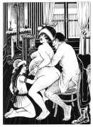 Just how autobiographical the book is is open to question, though Louÿs’ reference to Teresa de Heredia, whose daughter Louise he was married to for several years, gives it an edge of credibility. Beyond its possible autobiographical value, the work draws its power, its realistic dialogue and its love of transgression from the bourgeois universe to which the author belonged. According to André Pieyre de Mandiargues, who wrote a preface in to a a new edition in 1970 ‘This text is the ideal of the erotic genre, and constitutes masterpiece of Pierre Louÿs’ masterpiece.’ For those who can read French, there is a complete online text of Trois filles here.