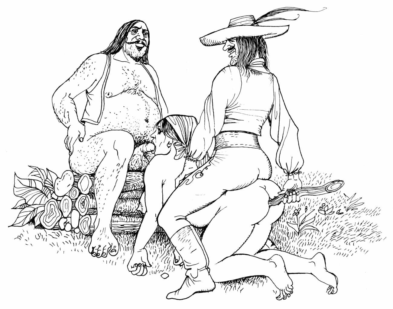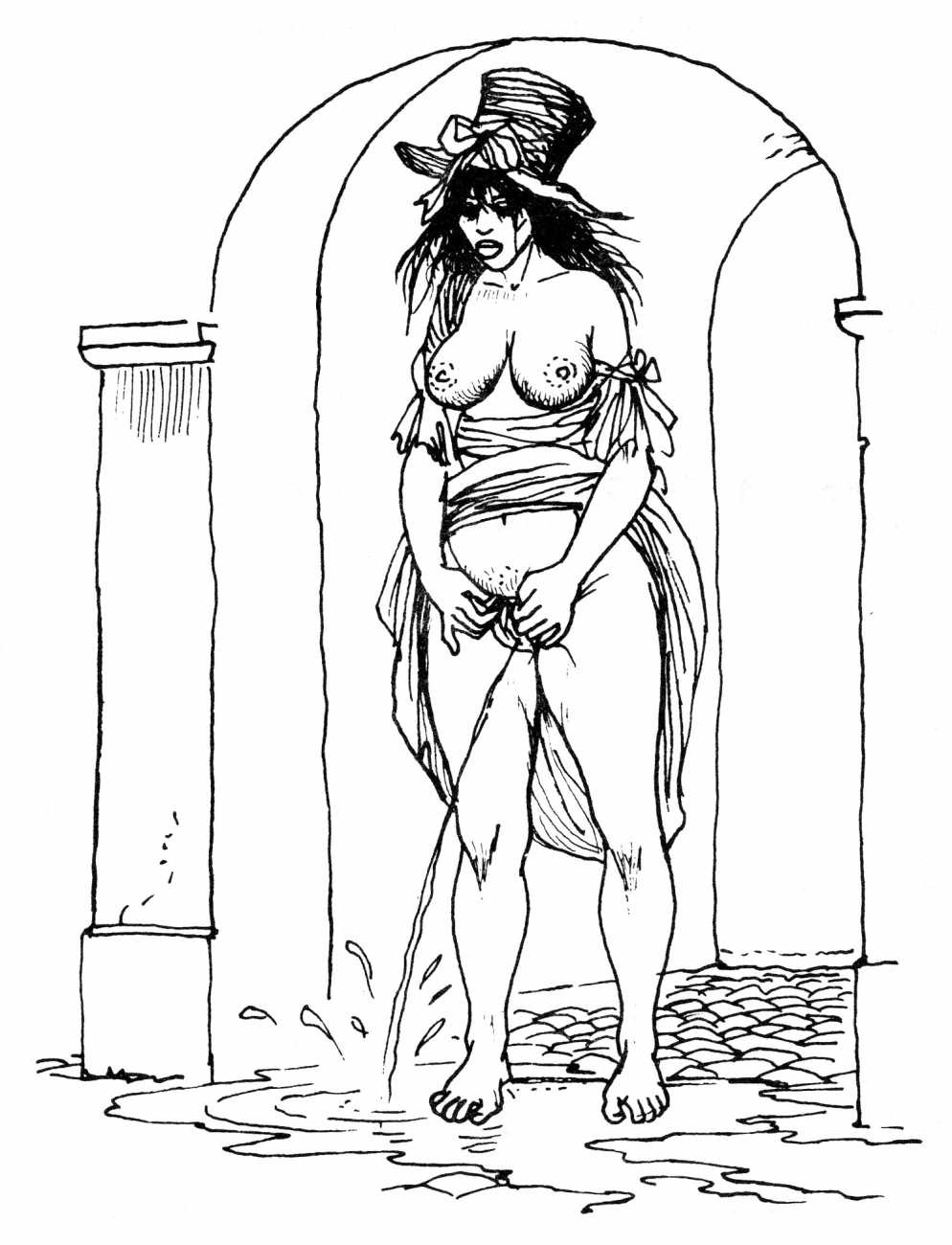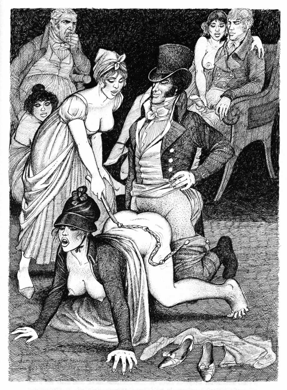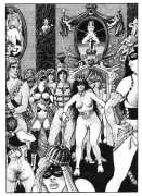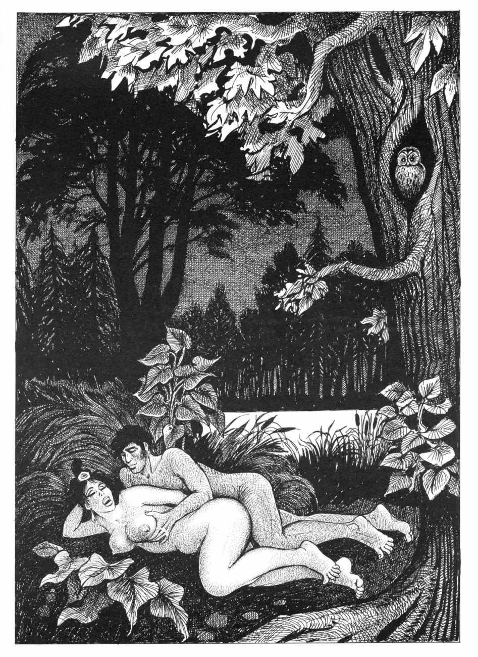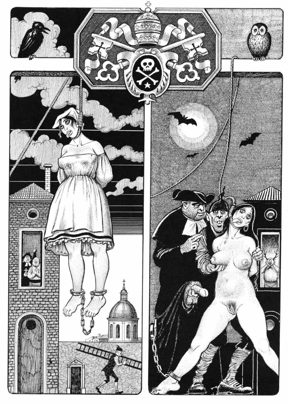 The Pichard-illustrated edition, like Trois filles de leur mère, takes the extremes of an extreme text to even greater extremes, concentrating on the wilder reaches of Volume Two. Unusually for Pichard, Mémoires d’une chanteuse allemande includes a large number of simple line drawings in addition to the detailed full-page illustrations; they show him to be a master of this format.
