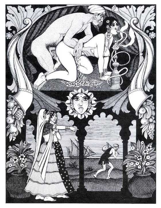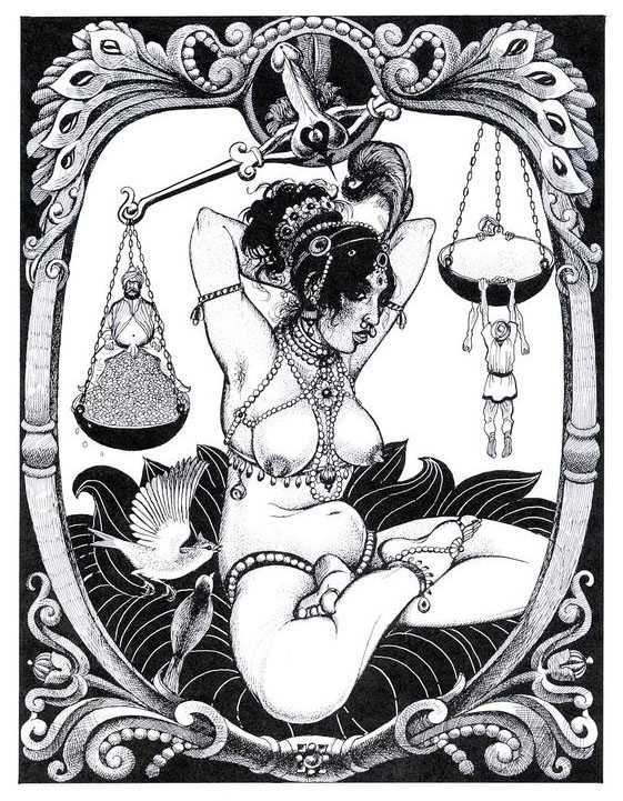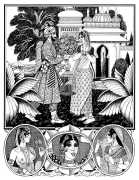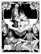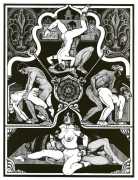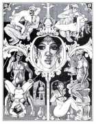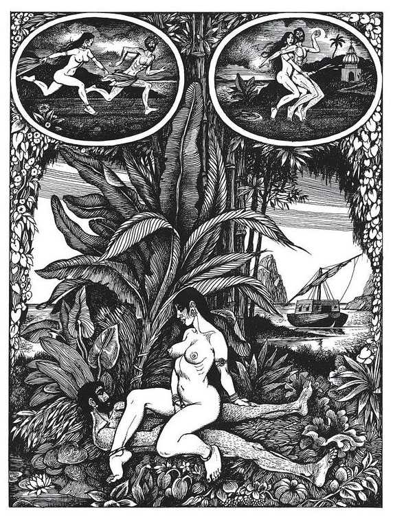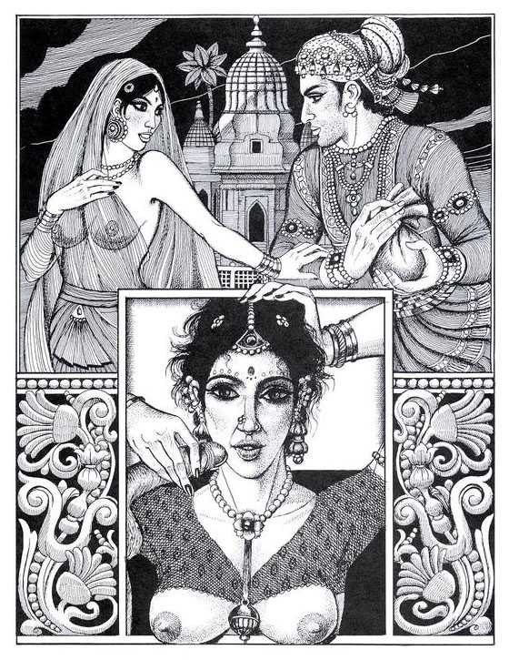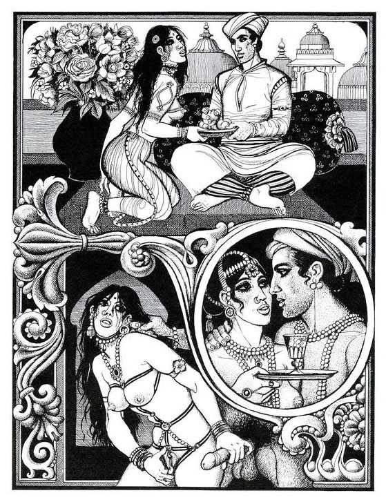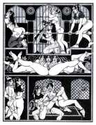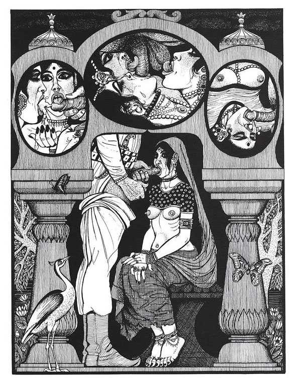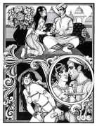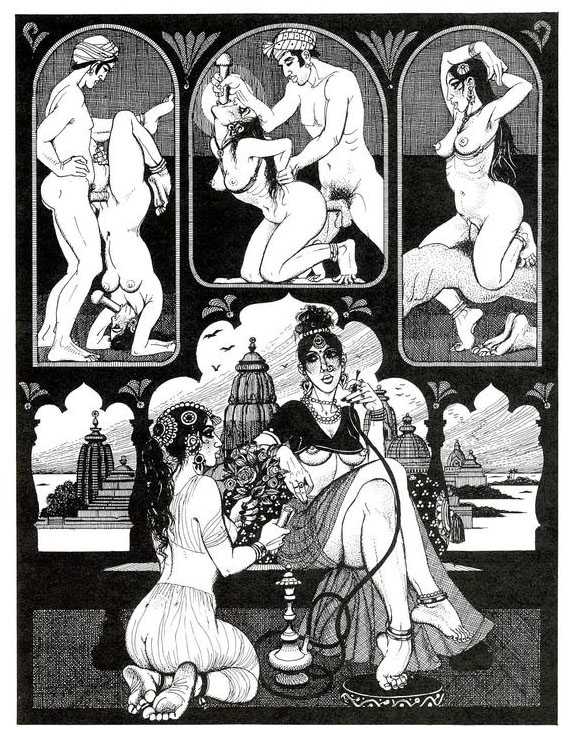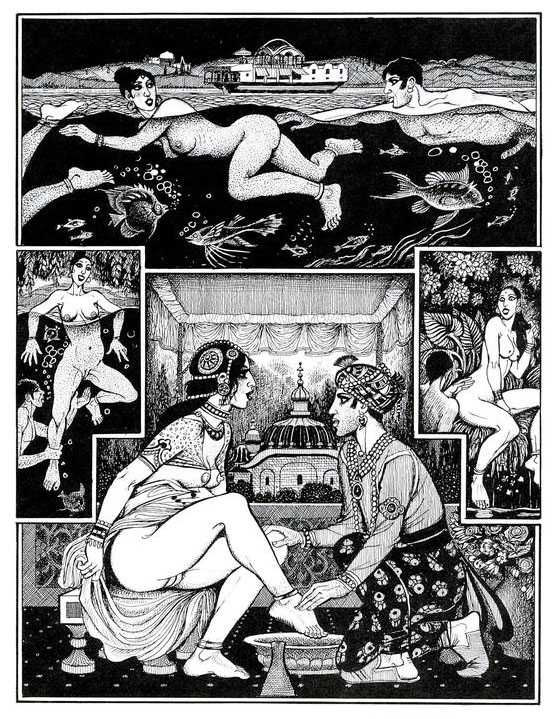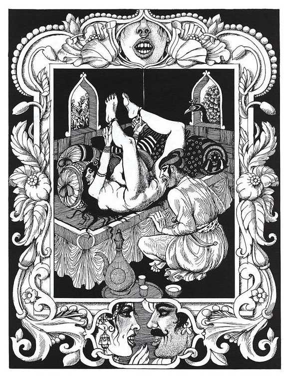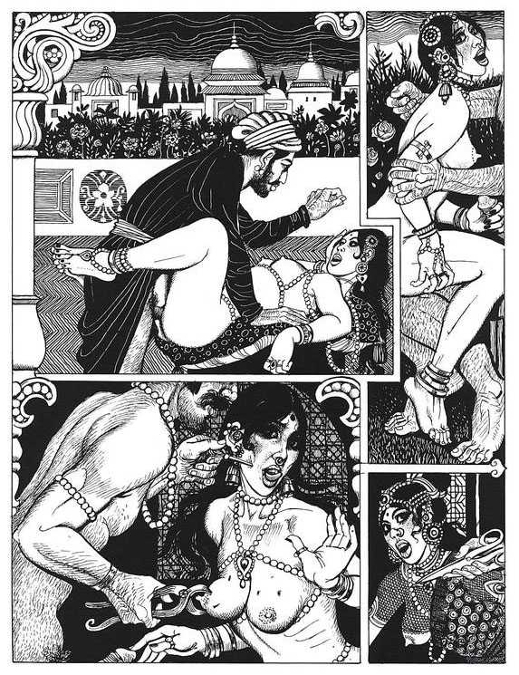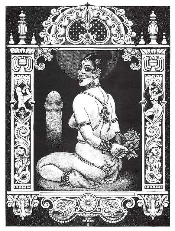 Following the success of La comtesse rouge, Dominique Leroy commissioned a set of illustrations from Pichard to accompany Vâtsyâyana’s classic Indian lovemaking manual Kama Sutra. After the violence and torture of Marie-Gabrielle and Erzsébet Báthory, Kama Sutra is blessedly violence-free, and demonstrates Pichard’s skill in designing single pages as works of art. It is also worth noting that compared with some of his earlier work, he has – of necessity in such a comprehensive work of sexual technique – learned how to draw more lifelike lingams.