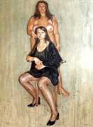 Looking at Mannelli’s paintings executed in the past few years it is possible to see two distinct trends in his exploration. One depicts the most intimate episodes of human life, the works representing couples entangled in emotional, physical relationships. The guiding emotion here is love, the ultimate winner in all the fights of life. On the other hand are his confusing, abstracted narrative group scenes, which place together the clad and the naked, portraying the innermost fantasies, the dirty reality of imagination, subjects that are generally condemned or considered rather appalling. Essentially these are depictions of everyone’s imaginings, but through their mundaneness they also contain something utterly forgiving. They allow the observer to see a human not as a dirty animal, but as a beautiful, complex, misunderstood being, a wonderful creation of nature.
