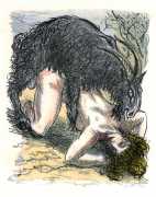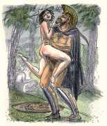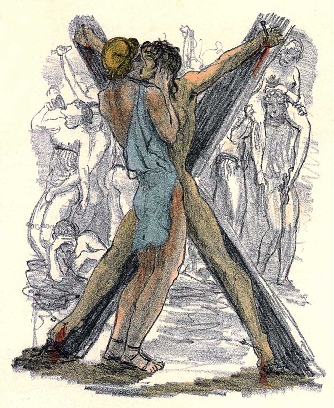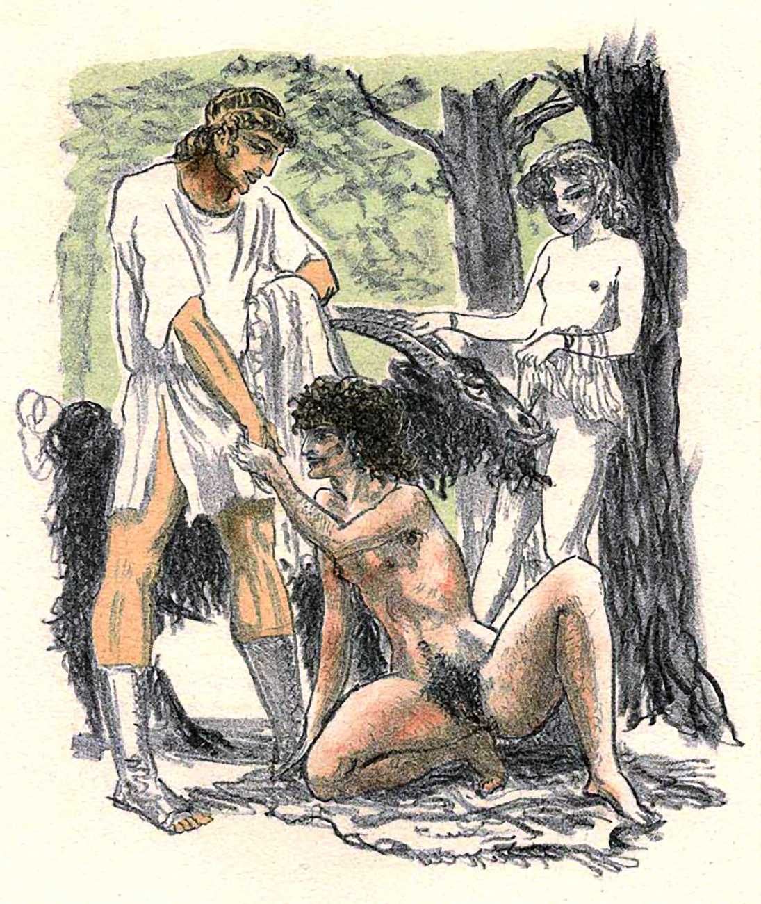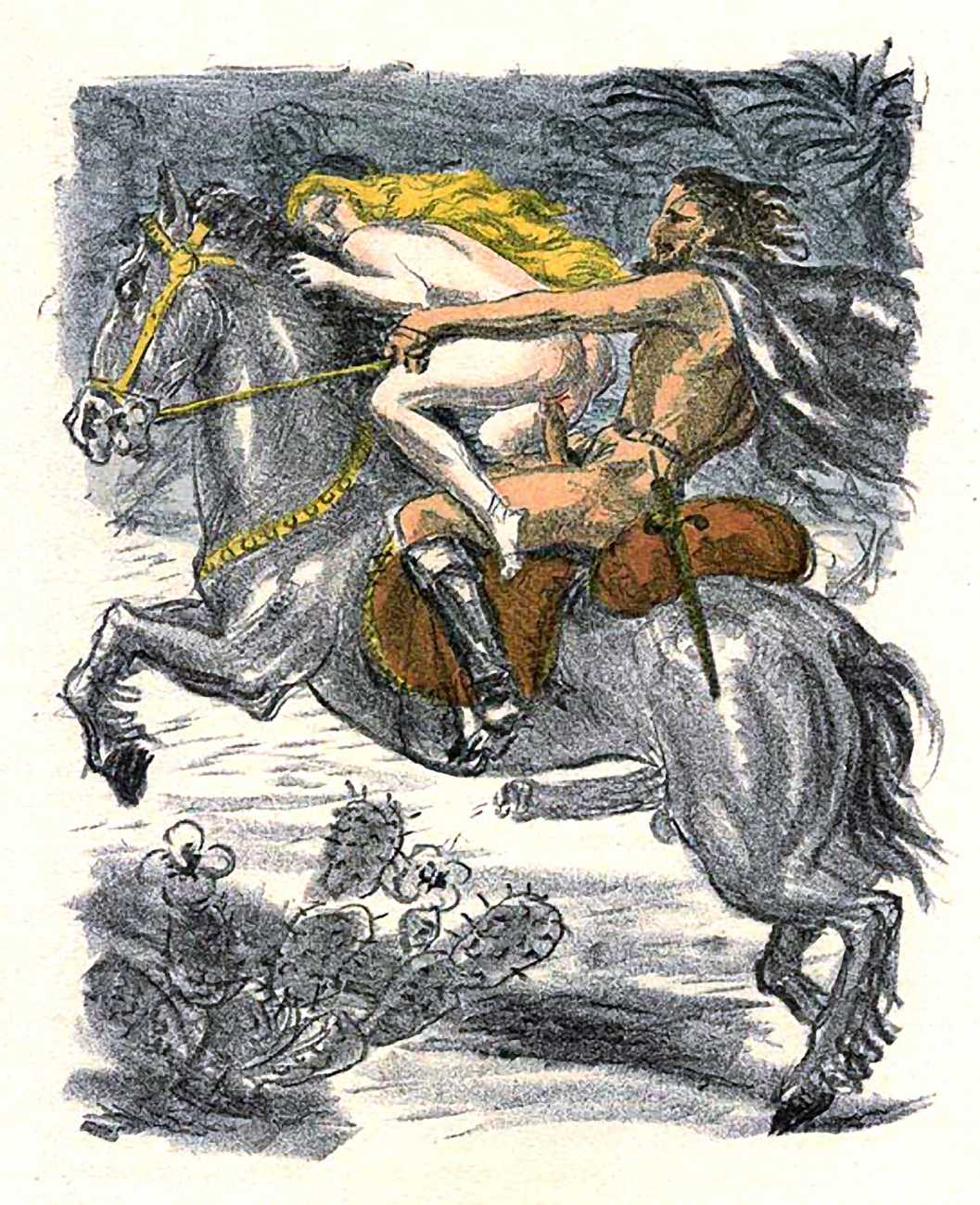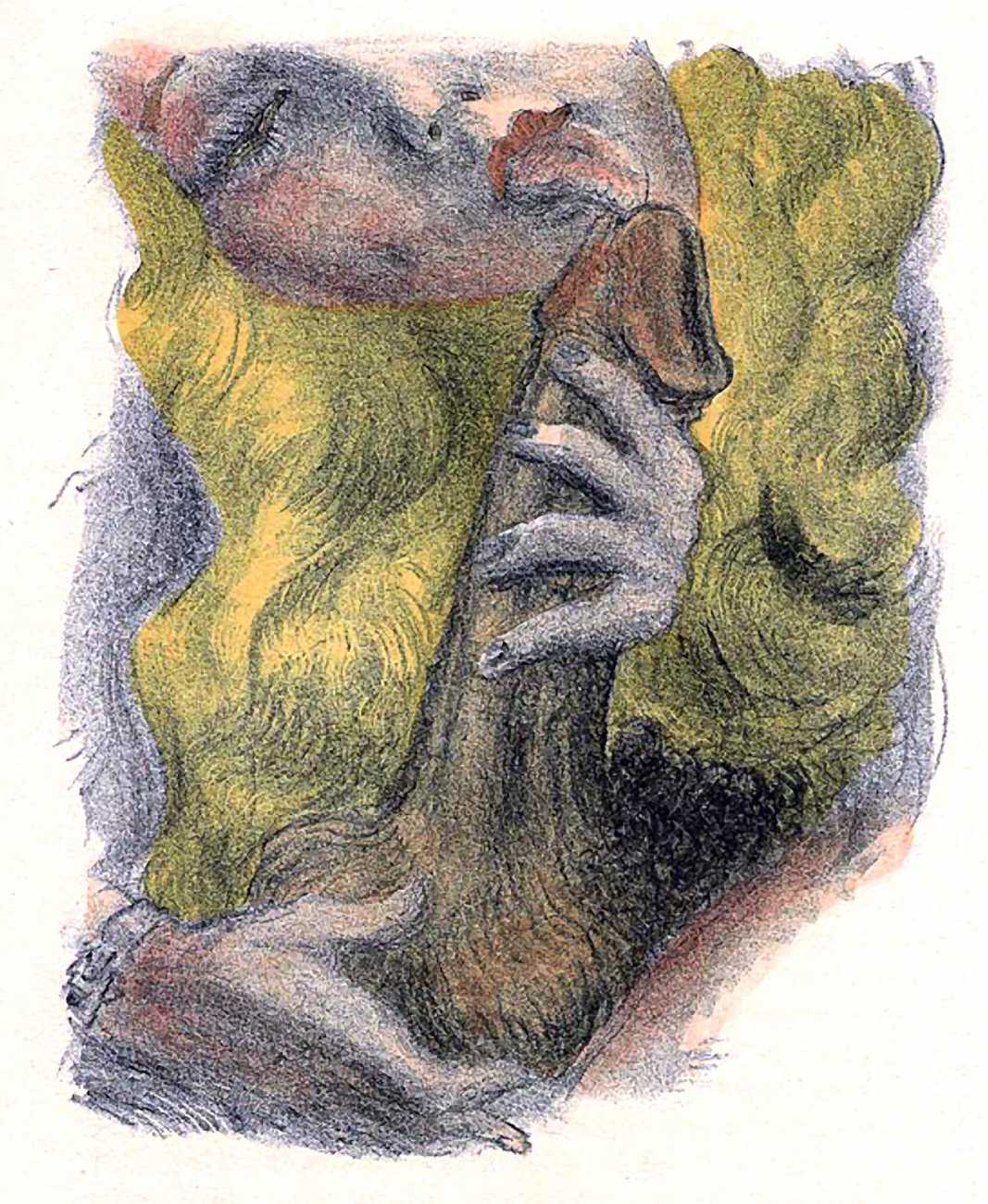 As well as illustrating actual scenes from Louÿs’ bestseller, Villa added a number of his own imagining, making this edition, published ‘Aus depèns d’un amateur’ (at the expense of a presumably deep-pocketed collector), probably the most explicit ever produced. The skilful use of lithography together with a restrained colour palette creates a lively sense of imagined classical revelries.