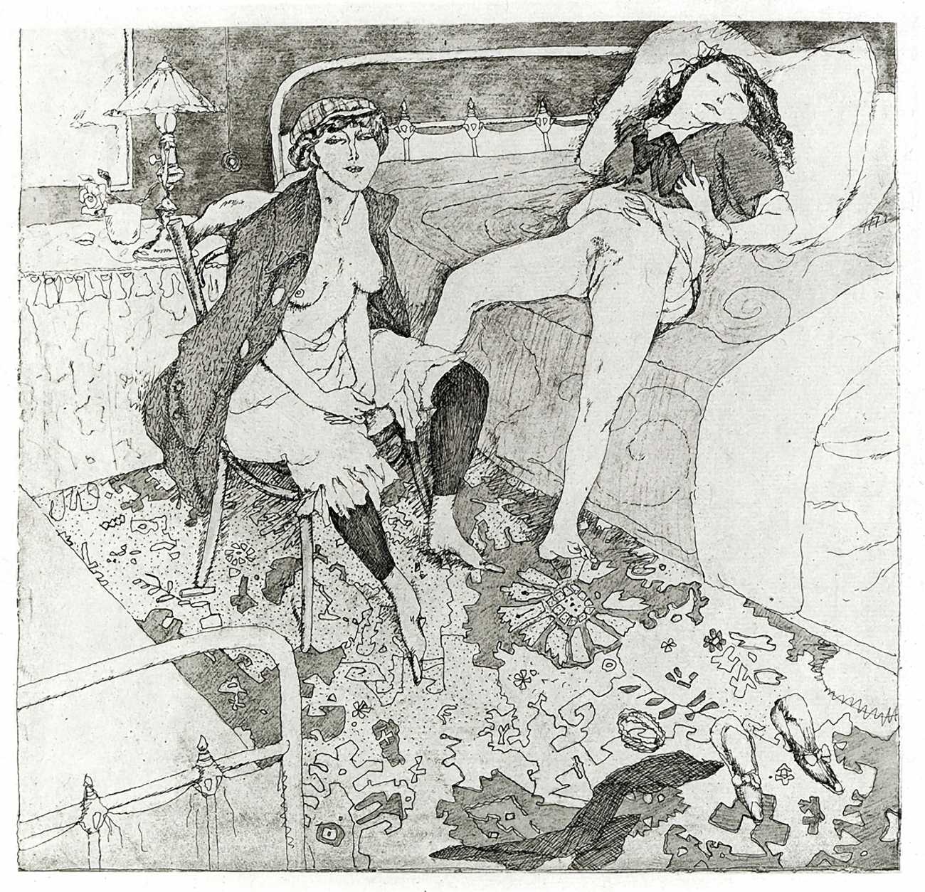 Pascin learned the technique late in his career, possibly from his friend Jean-Gabriel Daragnés, for it was in Daragnés’ studio in Montmartre that the Erotikon plates were stored until the portfolios were made up three years after Pascin’s suicide.