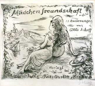 On the lesbian front, in addition to the Sappho portfolio in the same year, 1920, Schoff also created a portfolio called Mädchenfreundschaft (Girls’ Friendship), a tender portrayal of the enduring love of two girls of about ten, who share open air activities, kisses and cuddles. There is nothing explicitly sexual in this set of ten beautifully-observed engravings, but there is clearly mutual closeness and warmth.