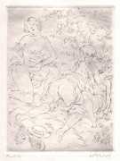 Six of Schoff’s Sappho engravings formed part of a much larger Gurlitt project, the nine-volume Der Venuswagen (The Chariot of Venus), which also included erotic portfolios by Lovis Corinth, Richard Janthur, Georg Walter Rössner, Franz Christophe, Willy Jaeckel, Paul Scheurich, Wilhelm Wagner and Willi Geiger; it was produced in an edition of 700 copies. Within two weeks of publication, the copies of Venuswagen still at the publisher were confiscated by the Berlin authorities. The art critic Kurt Tucholsky wrote an article titled ‘Der Zensor geht um!’ (The Censor is About!) in the weekly Weltbühne, which concludes ‘I do not want to be told by Public Prosecutor Orthmann what I can read, and if it continues like this, then in four weeks we will have a situation no different from Metternich’s censorship. The prosecutor does not need to know that Lovis Corinth is president of the Secession and an academy professor, nor that Georg Walter Rössner is a teacher at the state art school in Berlin, but he does need to take note that German writers, German painters and German publishers are not disposed to put up with the bullying intervention of a man who is incapable of any judgment whatsoever.’