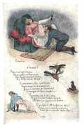 Feuilles a l’envers recueillies par un Bourguinon sale (Topsy-turvy Pages Collected by a Dirty Burgundian), generally attributed to Frédillo though there are no signatures, is a rather amazing collection of illustrated verses. If these plates are indeed by Frédillo, then ‘Dirty Burgundian’ gives us a clue that he may have come from this famous wine-making region in central France.