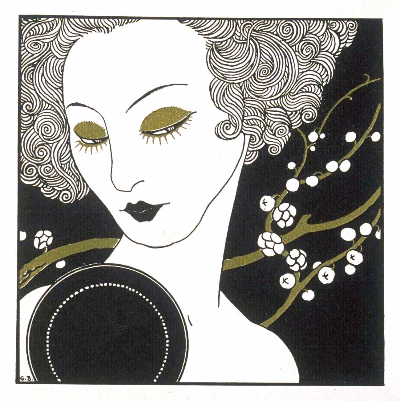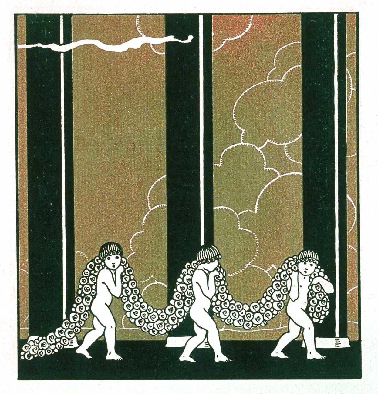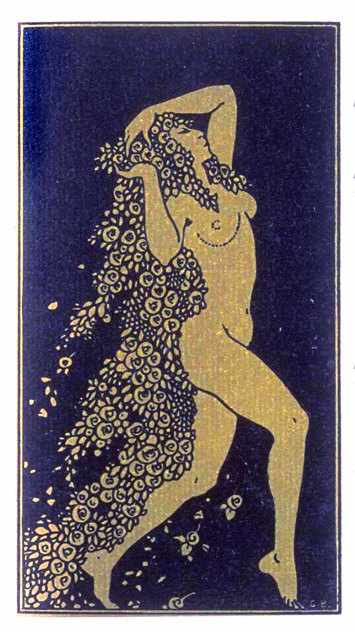 The gold and black illustrations, clearly inspired by Aubrey Beardsley, are printed from wood blocks on heavy paper, and display the elegant simplicity and confidence of line which weould become the hallmark of George Barbier’s output.