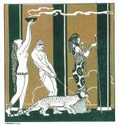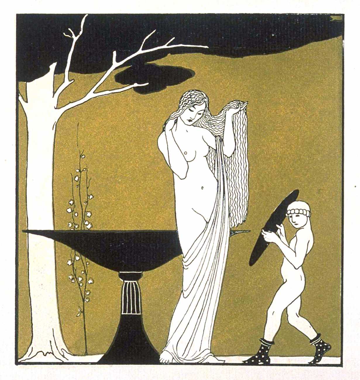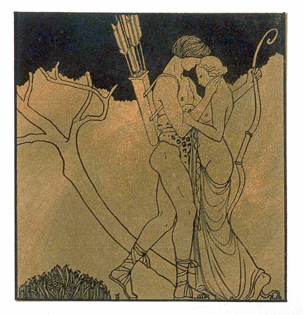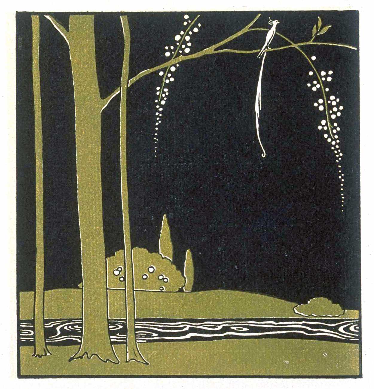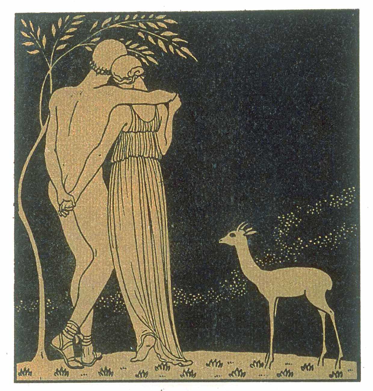 The gold and black illustrations, clearly inspired by Aubrey Beardsley, are printed from wood blocks on heavy paper, and display the elegant simplicity and confidence of line which weould become the hallmark of George Barbier’s output.