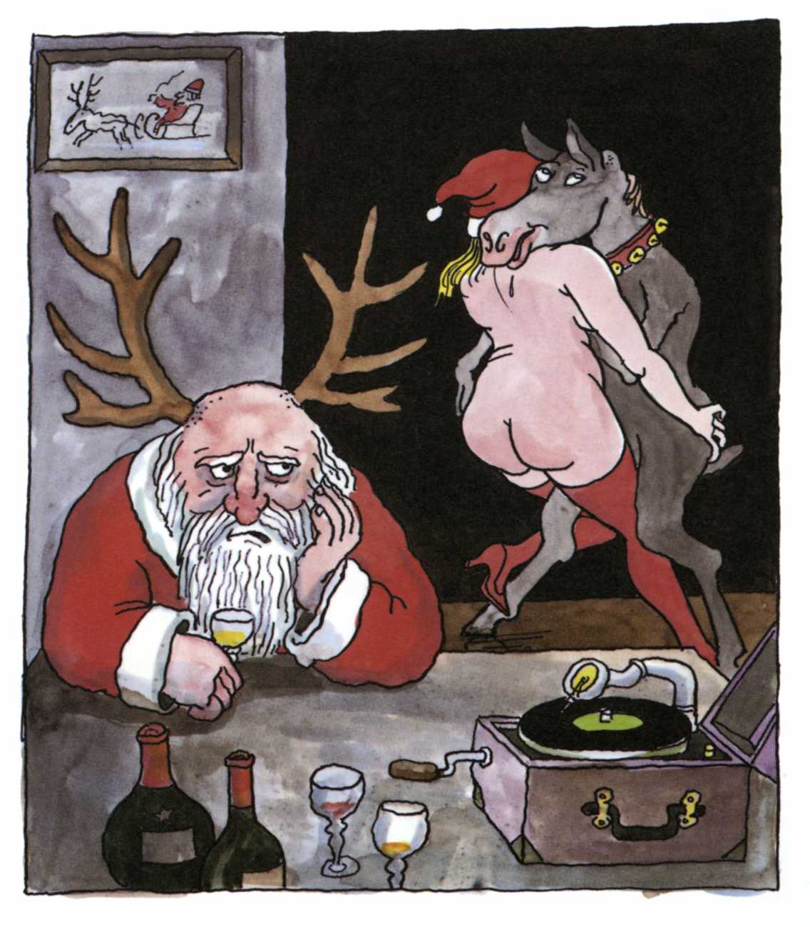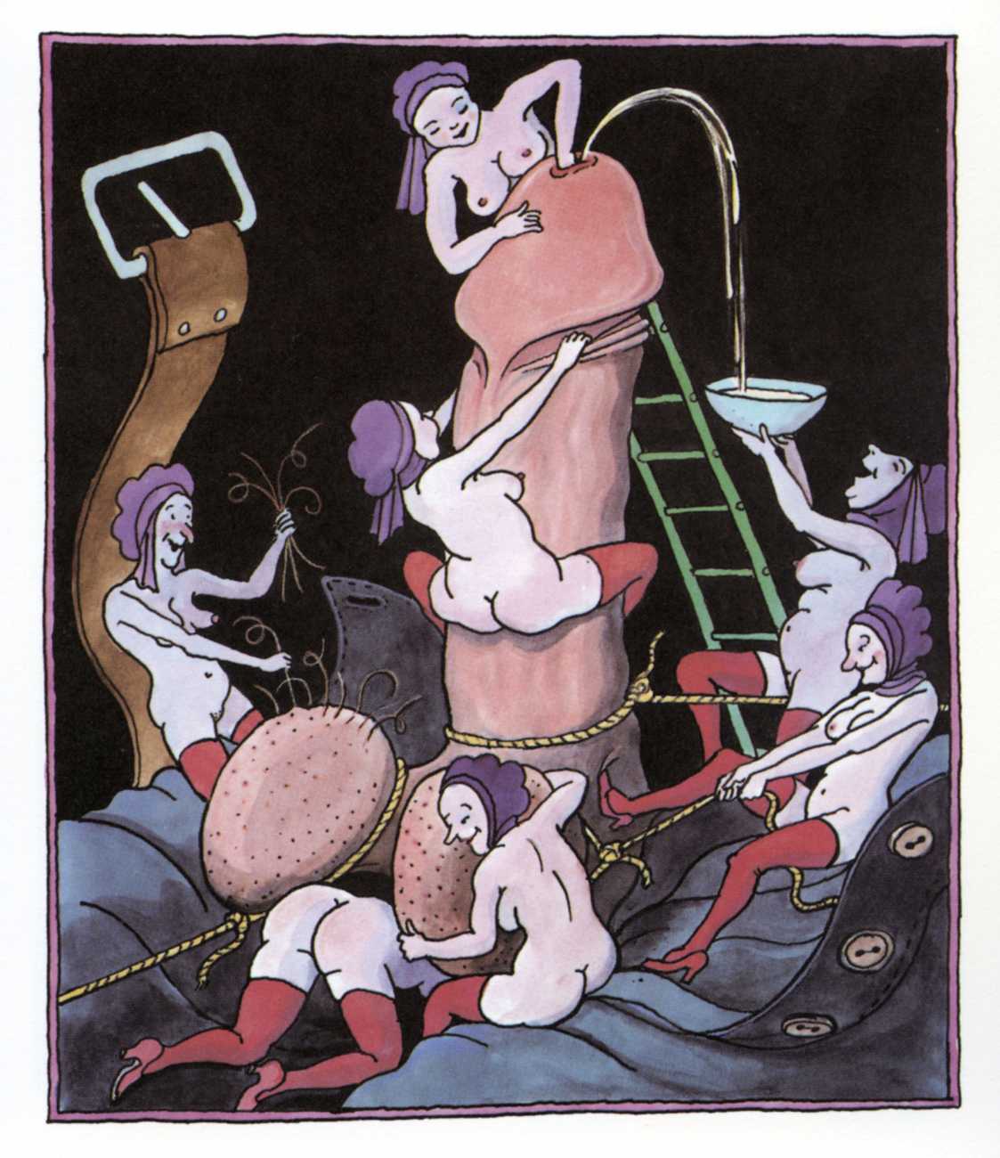 In 1975 Tomi Ungerer produced an extensive set of illustrations for Das Grosse Liederbuch, a big volume of German songs in romantic vein – it was a huge success and sold well over a million copies. As a joke – and as he explained ‘driven by my native devils’ – several years later he created a companion volume for adult readers, Erzählungen für Erwachsene (Stories for Grown-ups). It was published by Heyne, and though it did not sell anything like a million copies it was much appreciated by a select readership.