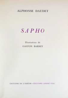 Sapho is one of more than two dozen novels by the French writer Alphonse Daudet (1840–97), an author who is still read widely today. Sapho was published in 1884 (an English translation, Sappho, appeared two years later), and tells the story of young Fanny Legrand, who having posed for a statue of the famous Greek poet for the sculptor Caoudal becomes the lover of a series of men, including the engineer Déchelette, the poet La Gournerie, and the young student Jean Gaussin.