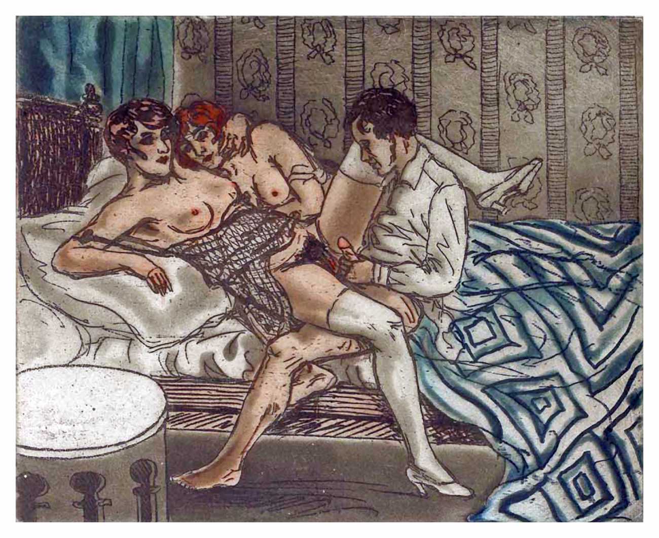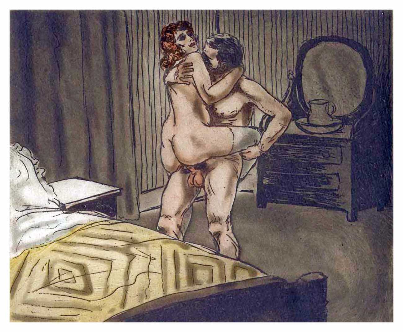 Each of the explicitly sexual plates features strong lines and bold but not garish colour. It is not hard to see why they were popular, or why so very few copies appear to have survived.