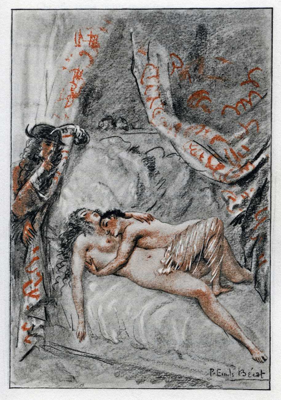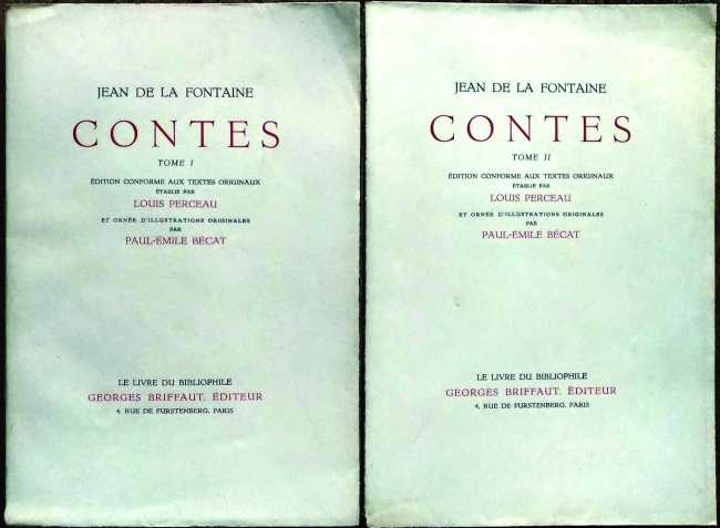 In 1913 George Briffaut had met the activist and writer Louis Perceau, who was passionate about satirical poetry, erotic literature and scholarly bibliographic research. Perceau, together with Guillaume Apollinaire et Fernand Fleuret, had just produced L’enfer de la Bibliothèque Nationale (The Forbidden Books of the National Library), and Briffaut recognised Perceau’s editorial skills. The thorough editing of Jean de La Fontaine’s Contes or Tales took Perceau more than a year, and this two-volume edition, illustrated by Bécat, is still considered a standard version.