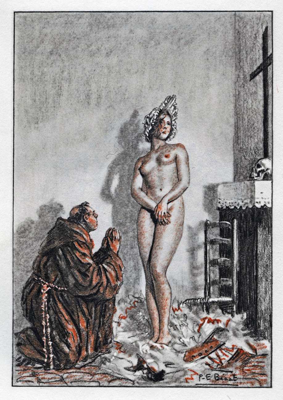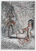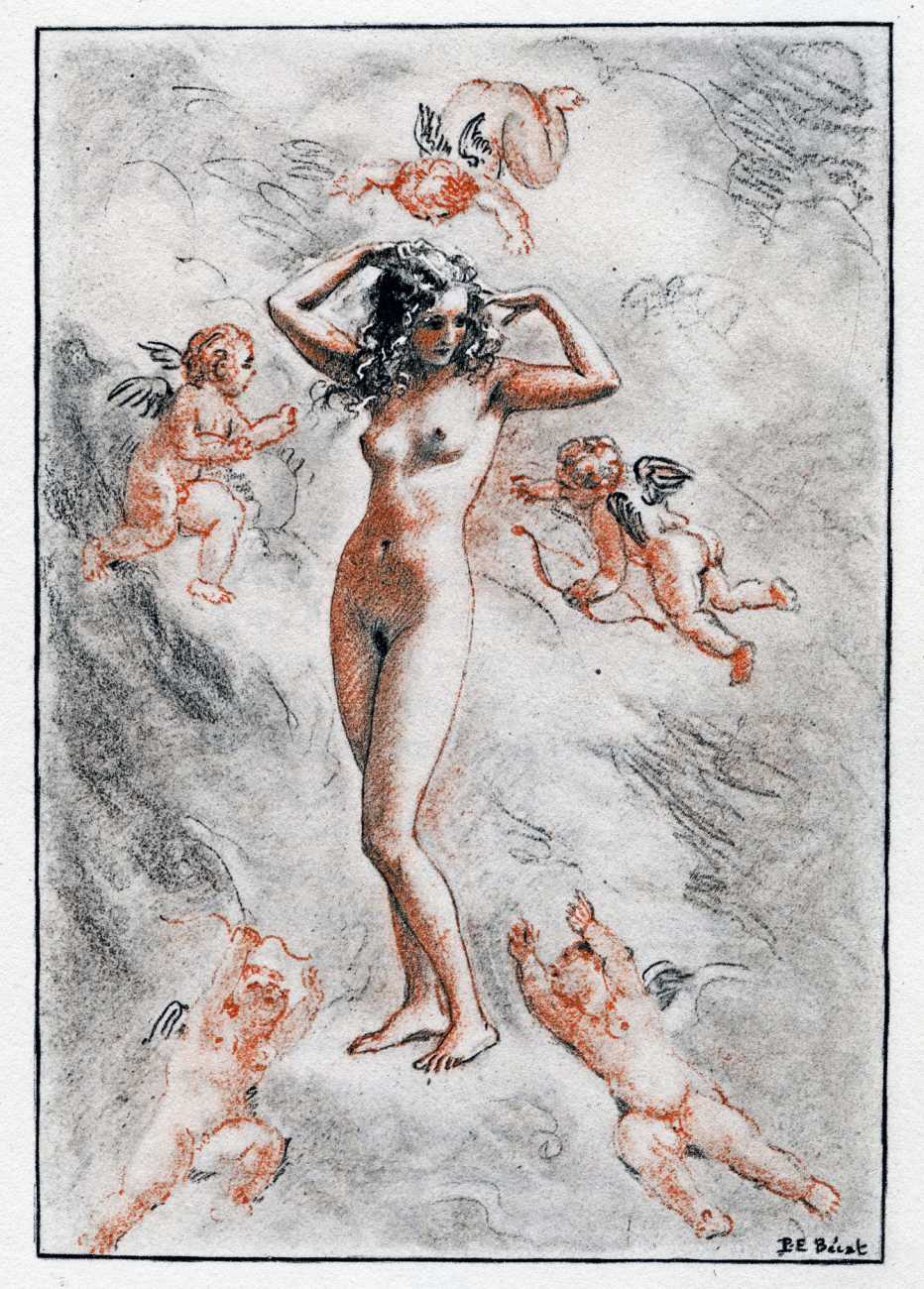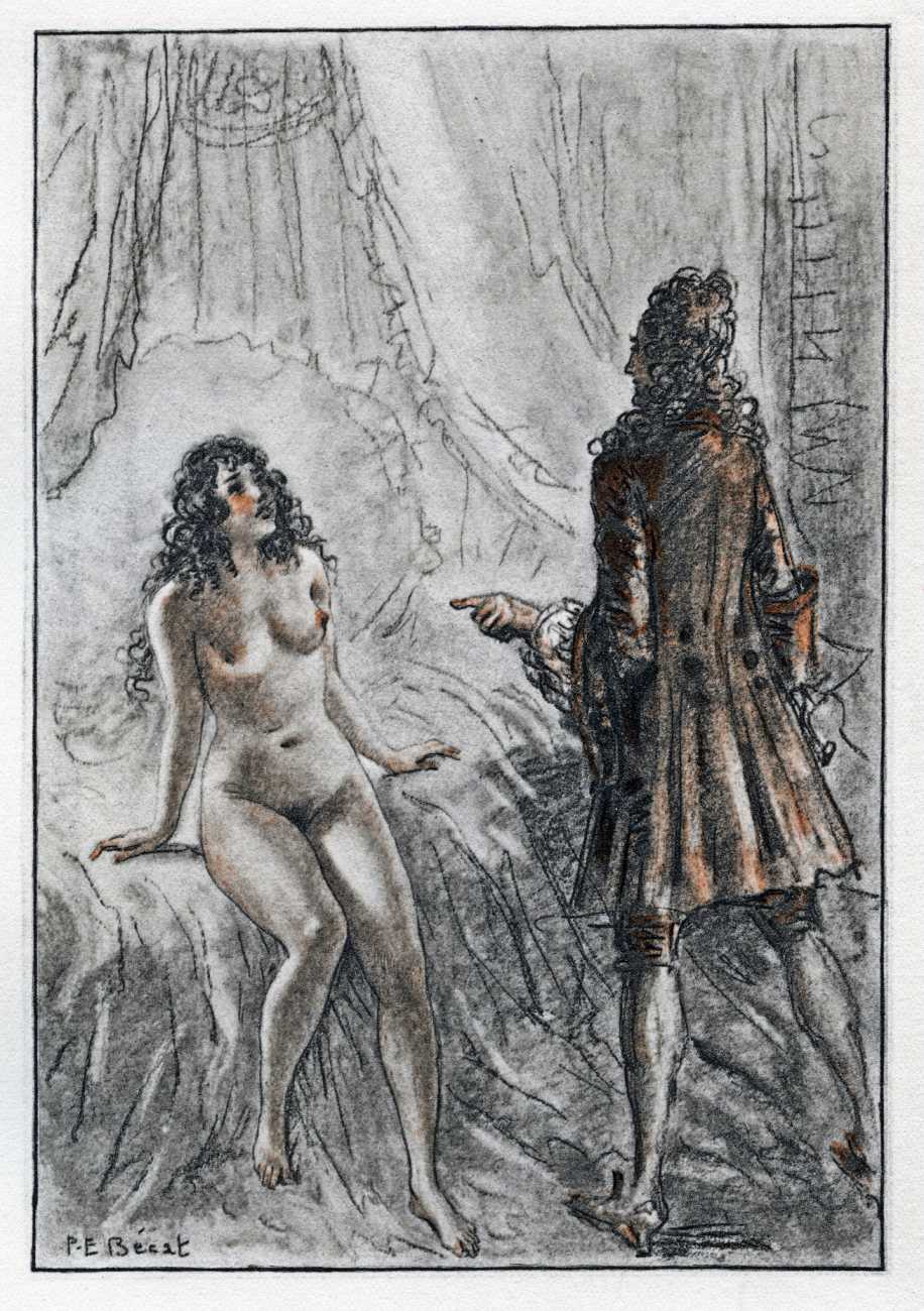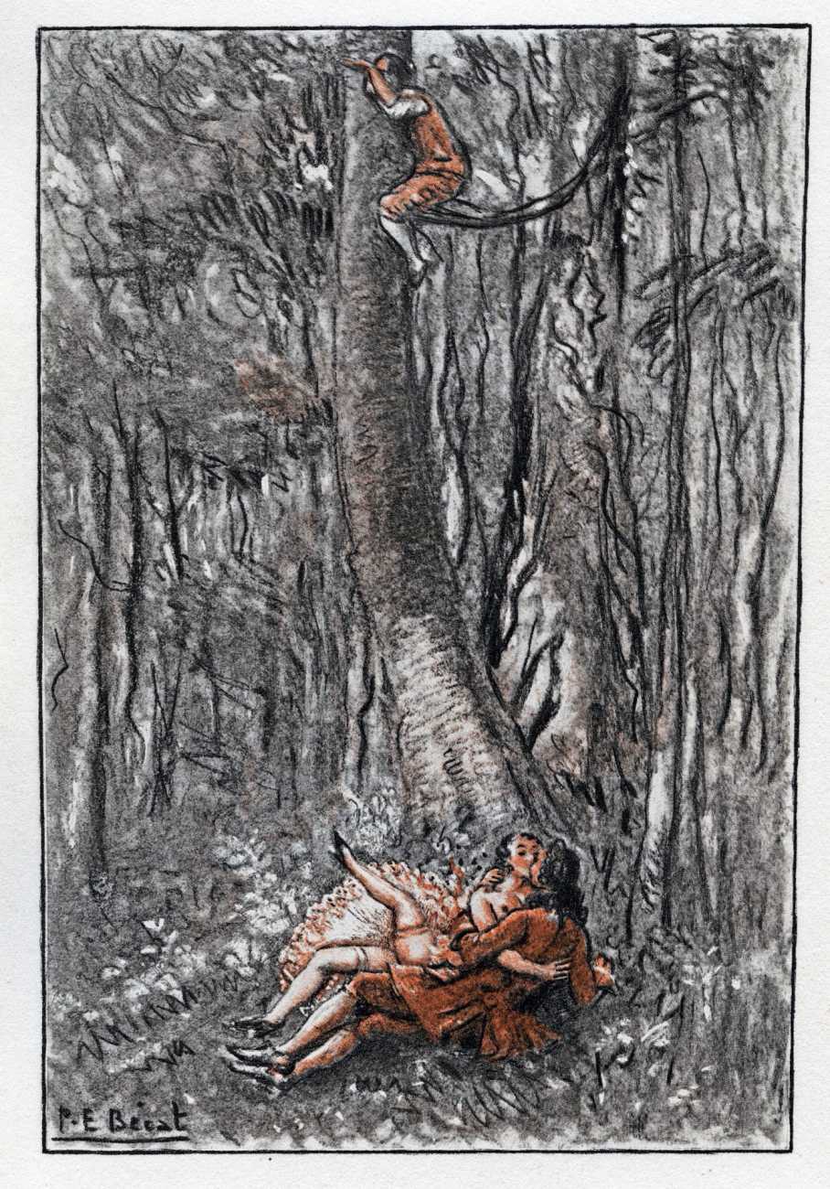 As erotic art the 37 two-tone plates for La Fontaine are relatively tame, though you will find plenty of Bécat’s trademark rotund breasts and buttocks, and he manages to capture much of the humour of the tales. There is even a penis if you look hard enough.