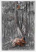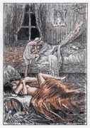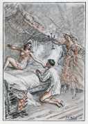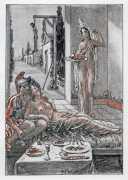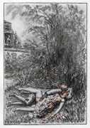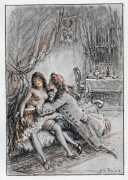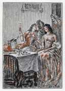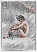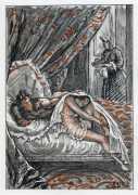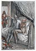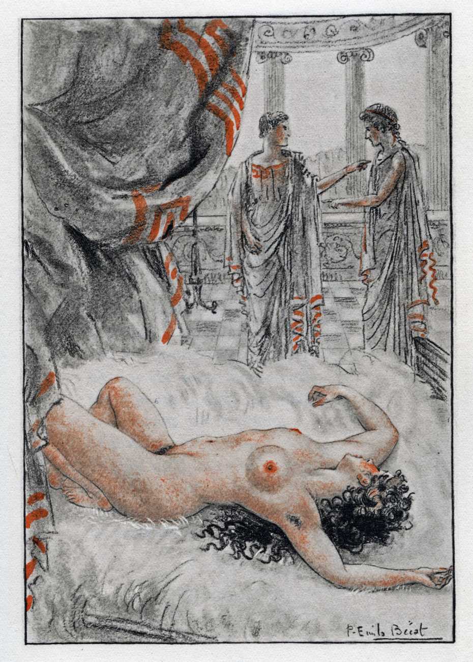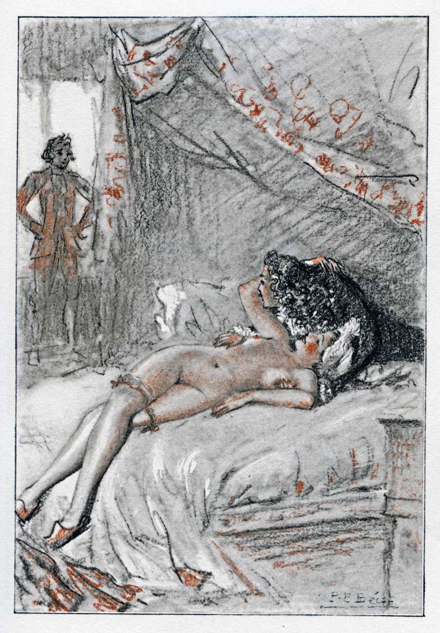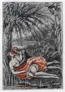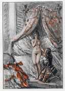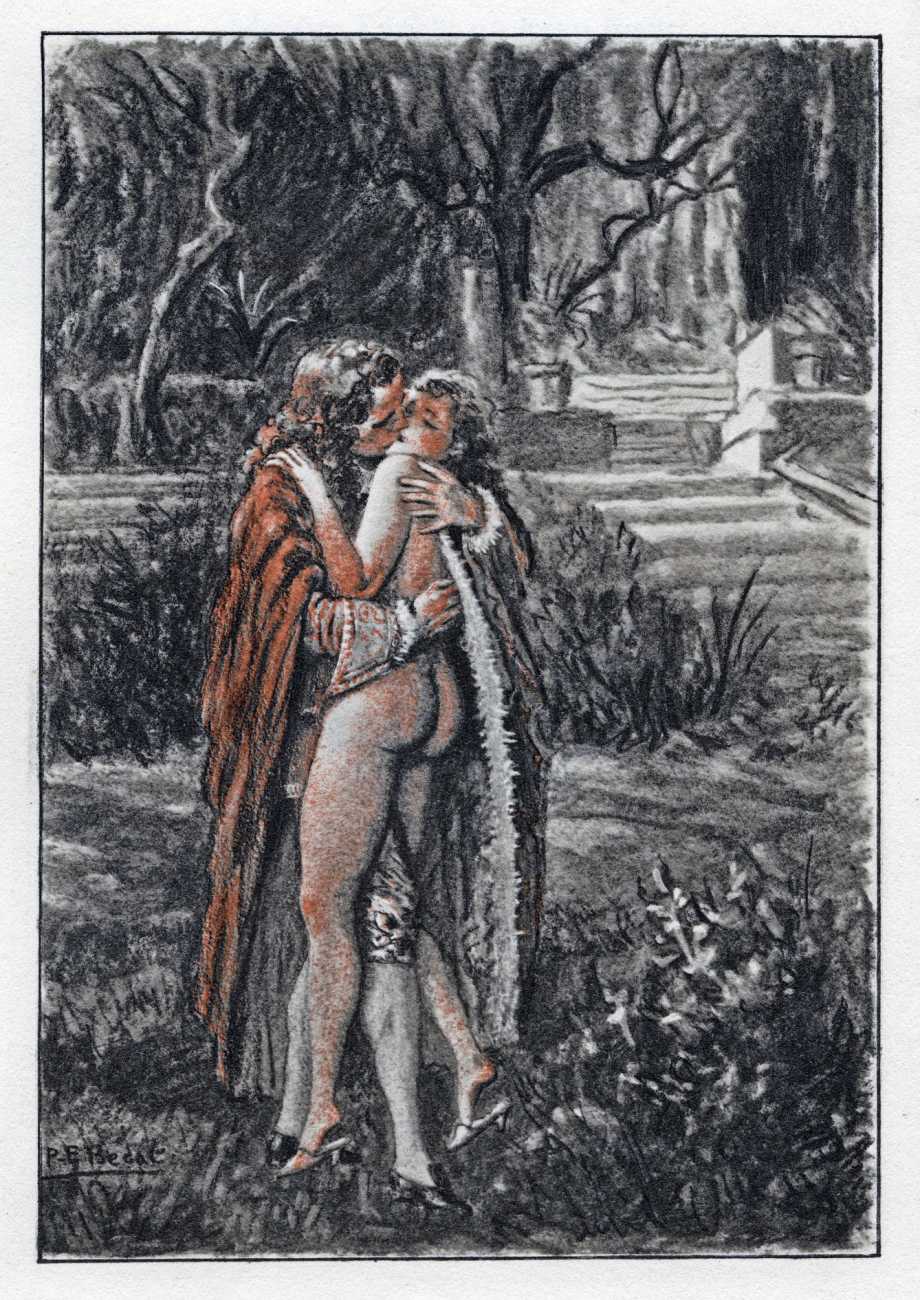 As erotic art the 37 two-tone plates for La Fontaine are relatively tame, though you will find plenty of Bécat’s trademark rotund breasts and buttocks, and he manages to capture much of the humour of the tales. There is even a penis if you look hard enough.