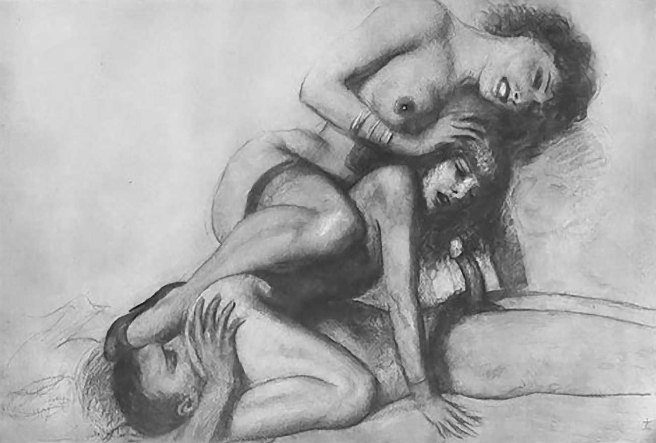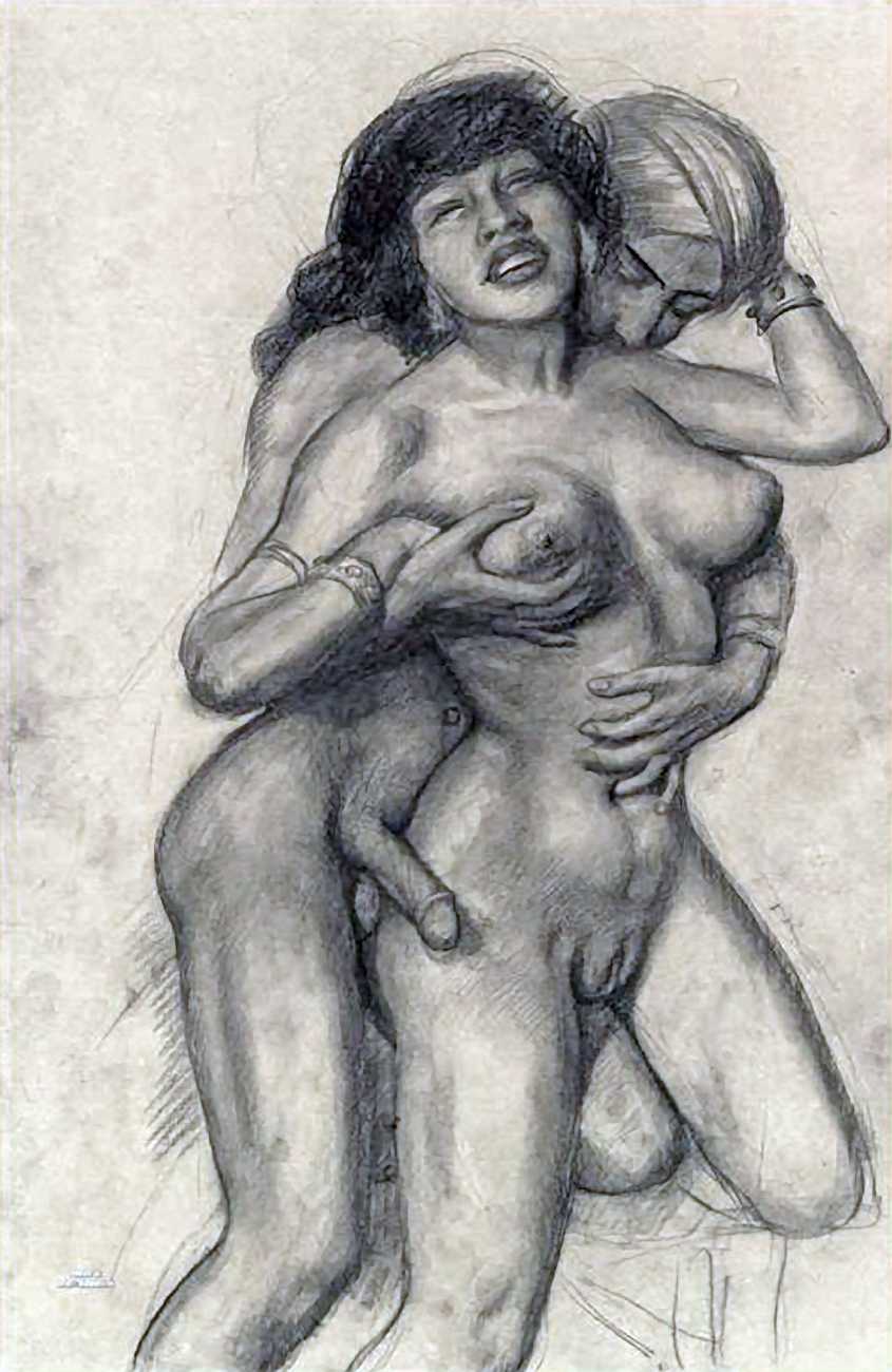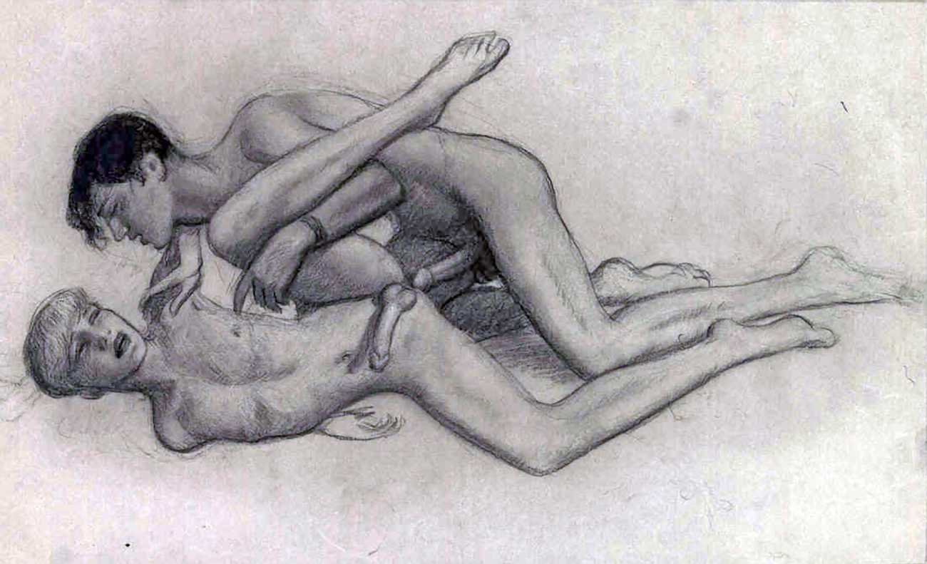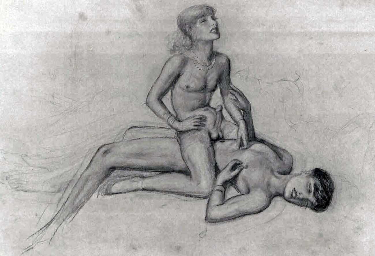 While Marcel Herrfeldt is almost exclusively seen as a painter of large colourful canvases of conventionally beautiful women, what is less well-known is that throughout his artistic career he also maintained portfolios of detailed pencil sketches of sexual encounters, most of which are much more explicit than the paintings. From standard couplings to gay and lesbian sex, group encounters, and even large-scale orgies, he used his talent in life drawing to imagine an enormous range of intimate explorations – how much was based on personal experience and working with live models we shall never know.