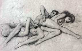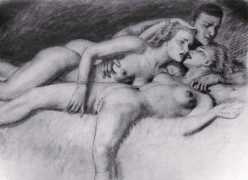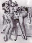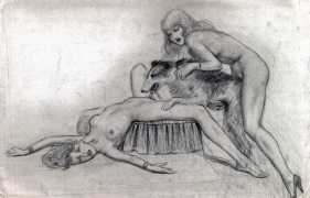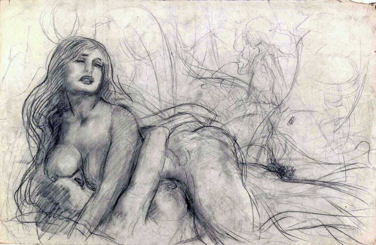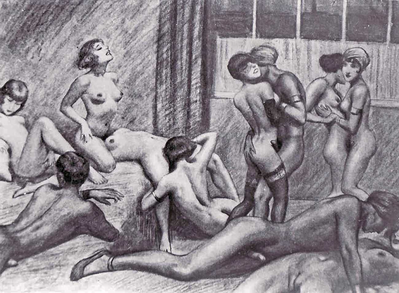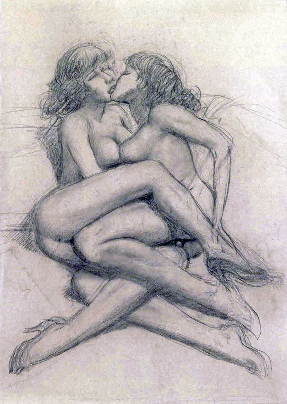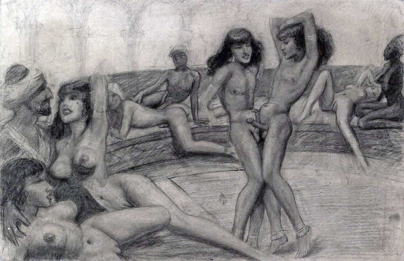 While Marcel Herrfeldt is almost exclusively seen as a painter of large colourful canvases of conventionally beautiful women, what is less well-known is that throughout his artistic career he also maintained portfolios of detailed pencil sketches of sexual encounters, most of which are much more explicit than the paintings. From standard couplings to gay and lesbian sex, group encounters, and even large-scale orgies, he used his talent in life drawing to imagine an enormous range of intimate explorations – how much was based on personal experience and working with live models we shall never know.
