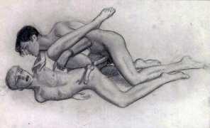 Apart from a few which were shared with friends and colleagues, most of his erotic drawings came to light after his death, and the selection shown here come from several collections sold at auction during the 1970s.
