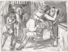 The six engravings display a real talent in engraving, with detail like the folds of clothing expertly represented. And as well as appreciating the explicit sexual intimacy depicted it is worth spending time with each, noting the facial expressions and background details. Particularly striking is the hanged man; death, especially by hanging, was a recurrent theme in art of the period, artists including Otto Dix and George Grosz as well as Schlichter producing striking works on the theme.