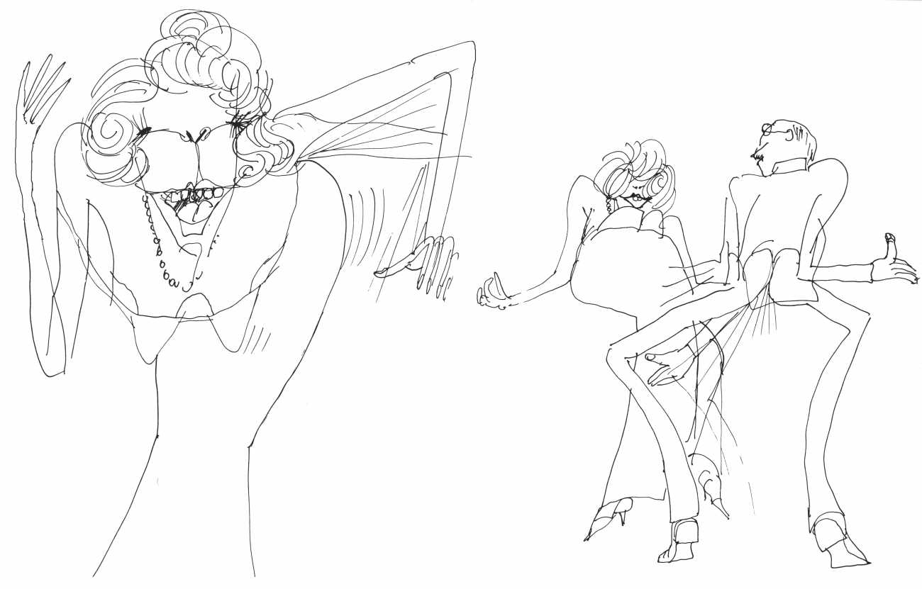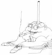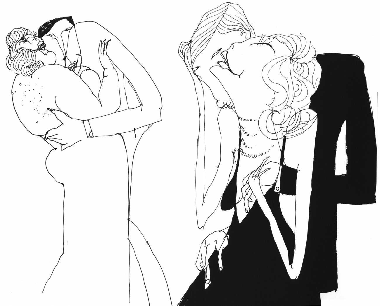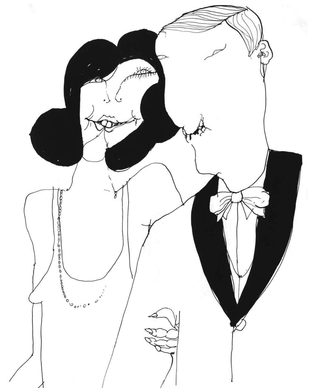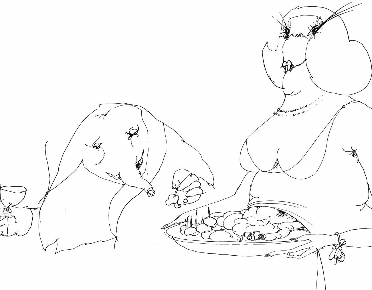 By 1966 Tomi Ungerer had been living in New York for nearly a decade, finding artistic and commercial success but at the same time becoming increasingly cynical about the social expectations that came with that success. For some time he had been drawing the high society ‘types’ he met at parties where he was expected to know how to socialise, and when he had enough to make a book he self-published The Party in a very small edition under the ‘Paragraphic’ imprint, mostly for his similarly critically-minded friends. Each of the drawings was matched with a barbed witty caption – ‘Miss Millie Follicle, heiress to the Spanflex fortune’, and ‘Mr Roy Fumblethumb entertaining Mrs Joyce Rampage’. Sexual innuendo is rife, and as the night progresses various body parts start slipping from the revellers’ elegant attire.
