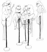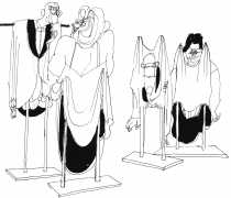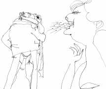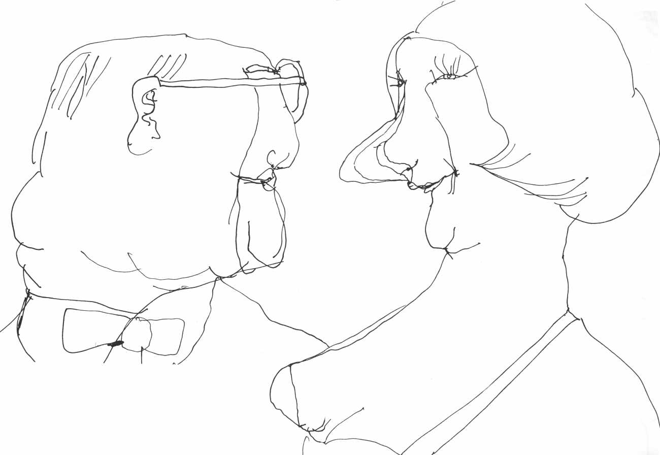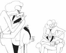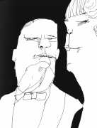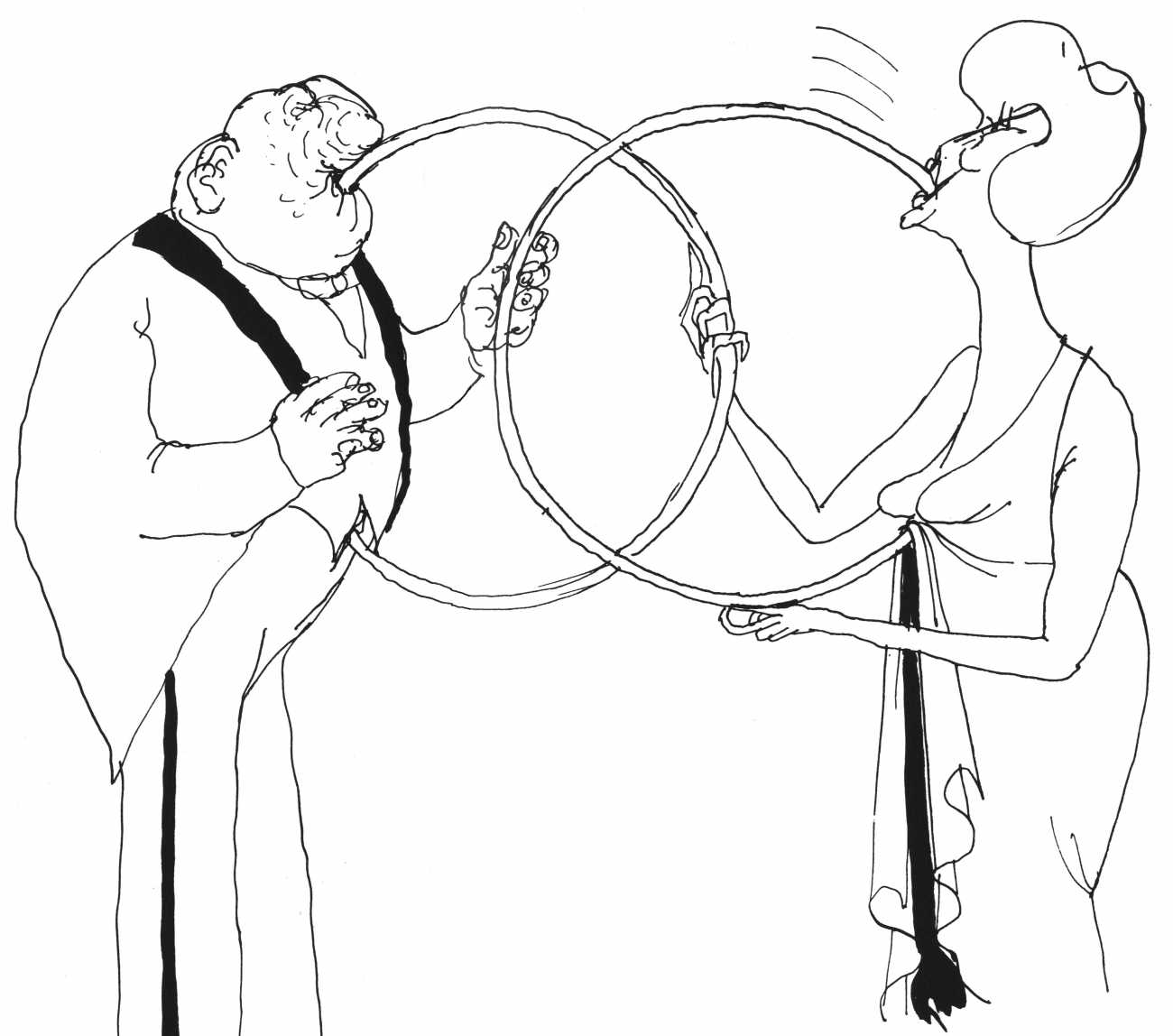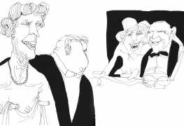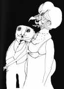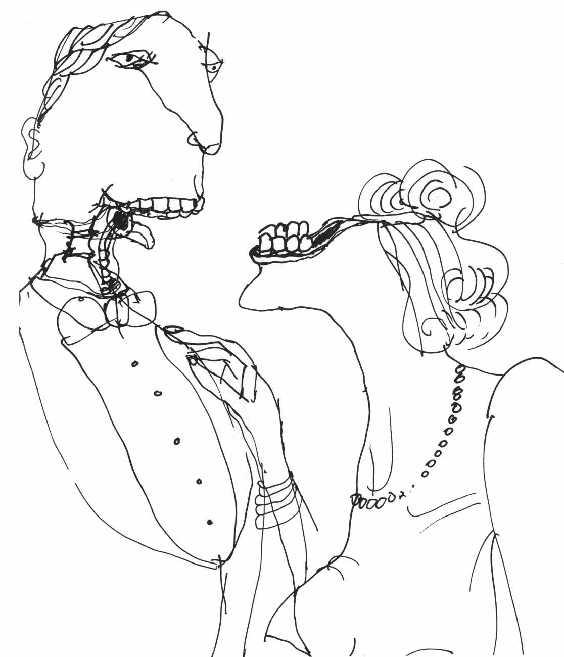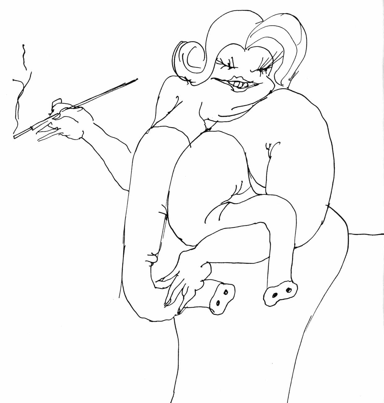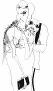 By 1966 Tomi Ungerer had been living in New York for nearly a decade, finding artistic and commercial success but at the same time becoming increasingly cynical about the social expectations that came with that success. For some time he had been drawing the high society ‘types’ he met at parties where he was expected to know how to socialise, and when he had enough to make a book he self-published The Party in a very small edition under the ‘Paragraphic’ imprint, mostly for his similarly critically-minded friends. Each of the drawings was matched with a barbed witty caption – ‘Miss Millie Follicle, heiress to the Spanflex fortune’, and ‘Mr Roy Fumblethumb entertaining Mrs Joyce Rampage’. Sexual innuendo is rife, and as the night progresses various body parts start slipping from the revellers’ elegant attire.