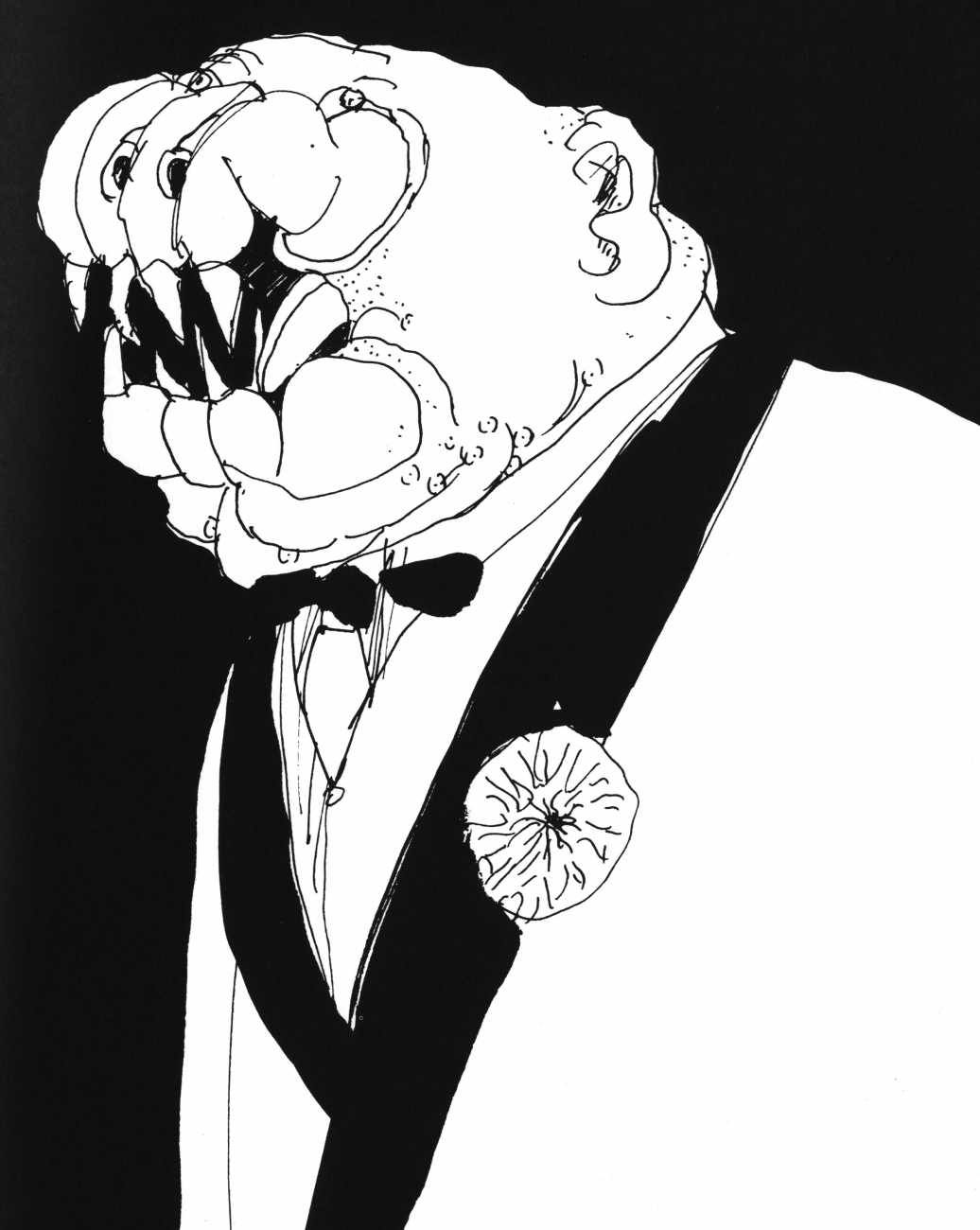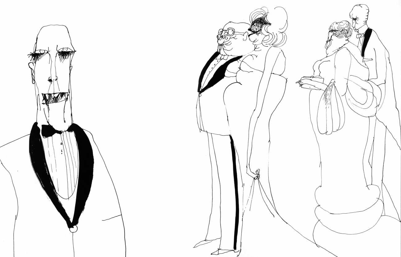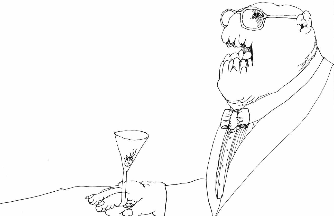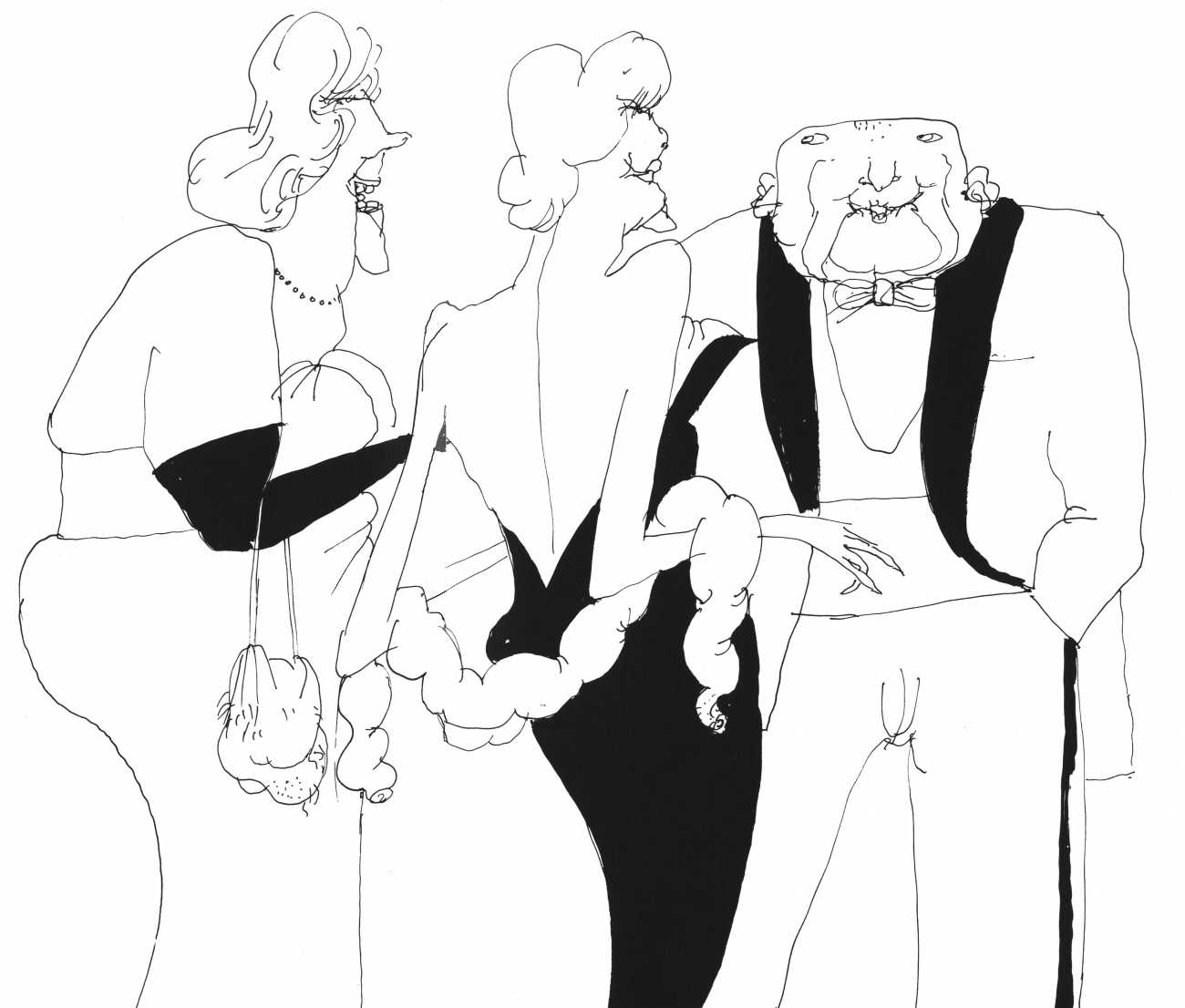 Ungerer’s angry satirical take on a Hamptons party, attended by captains of industry, tycoons, magnates and other fat cats luxuriating in their tuxedos, evening gowns and small talk, quickly became an underground success, and his Swiss publisher Diogenes produced a boxed trade edition (in English) in 1969, with a new cheap edition in 1973.