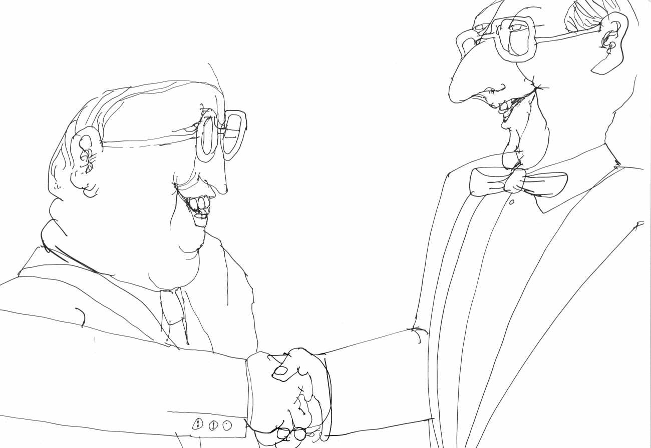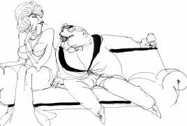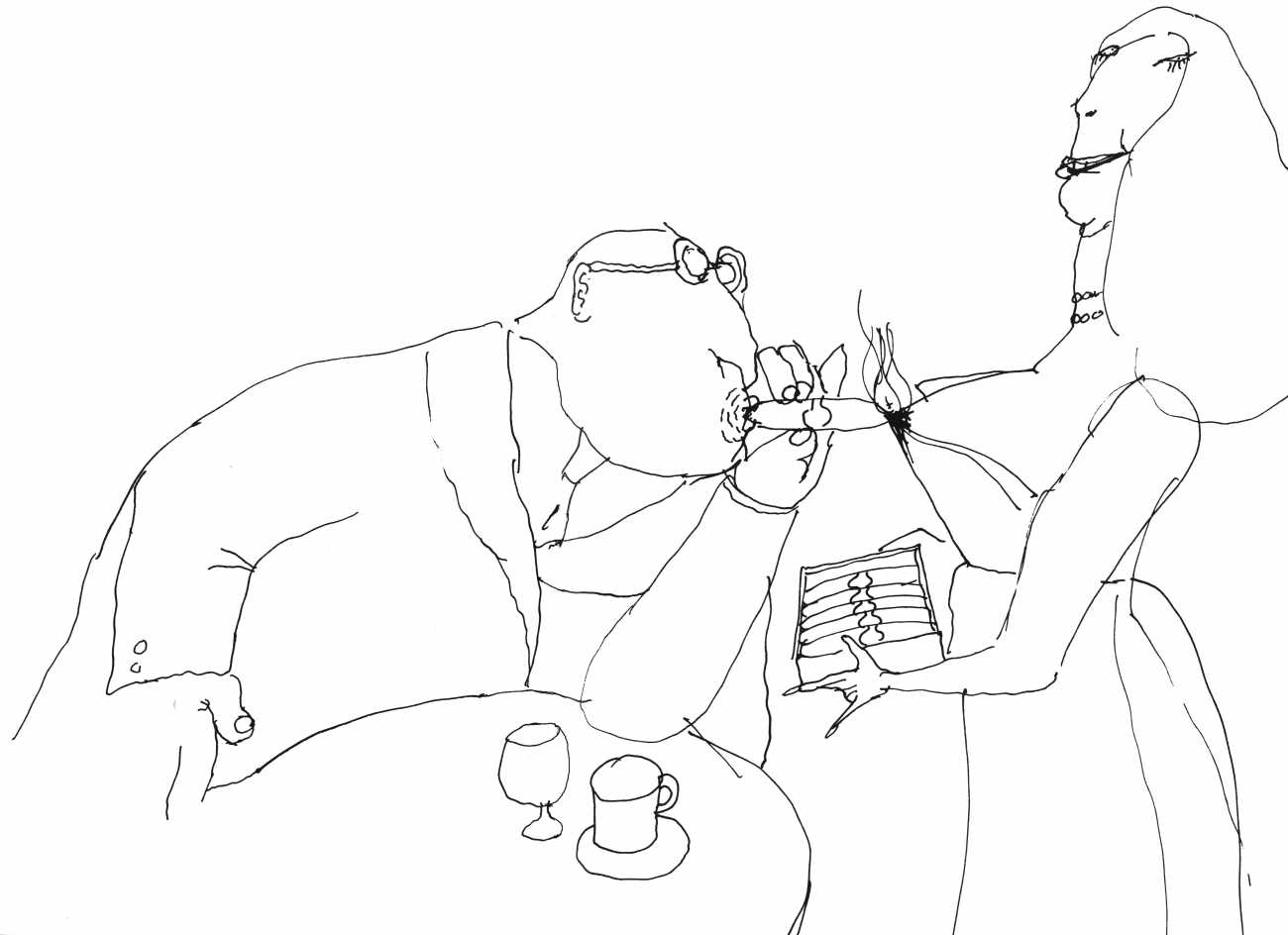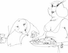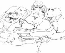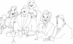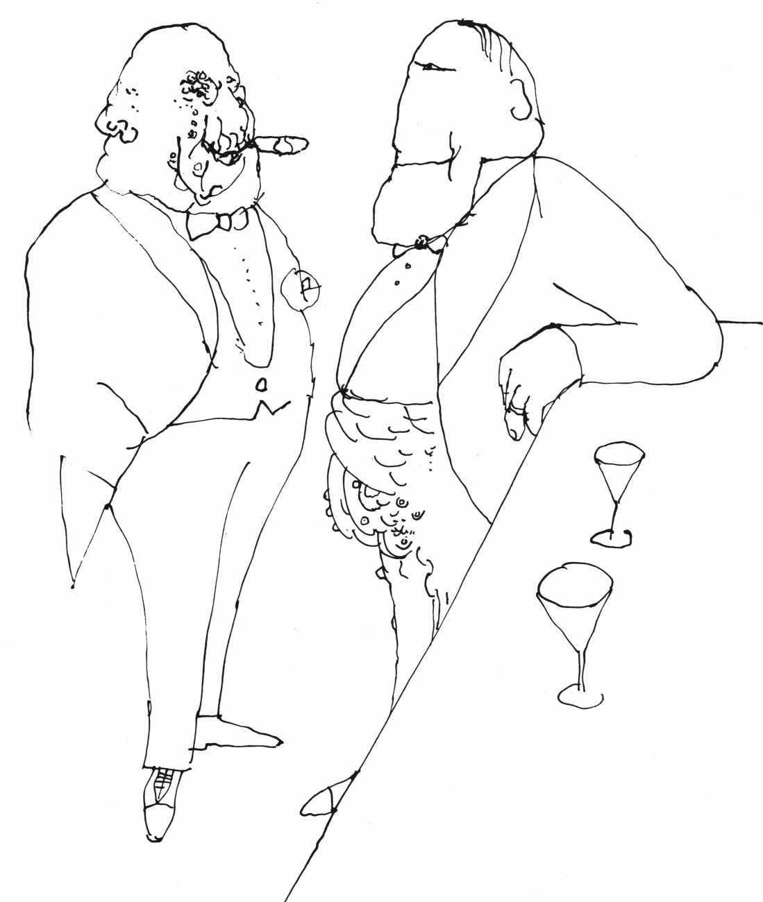 Ungerer’s angry satirical take on a Hamptons party, attended by captains of industry, tycoons, magnates and other fat cats luxuriating in their tuxedos, evening gowns and small talk, quickly became an underground success, and his Swiss publisher Diogenes produced a boxed trade edition (in English) in 1969, with a new cheap edition in 1973.