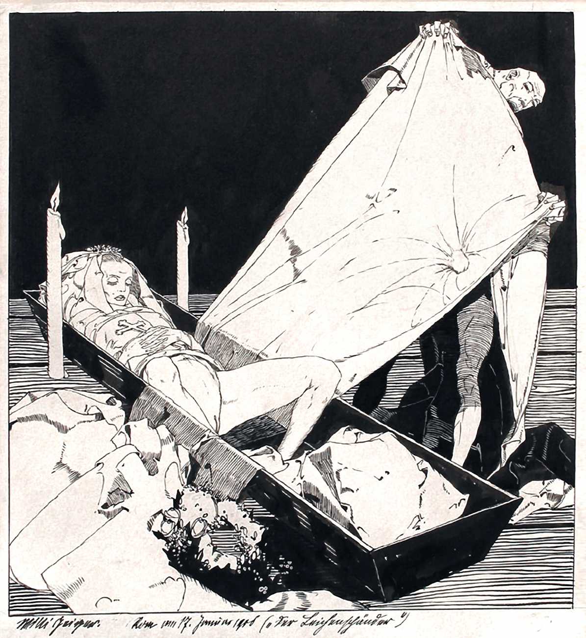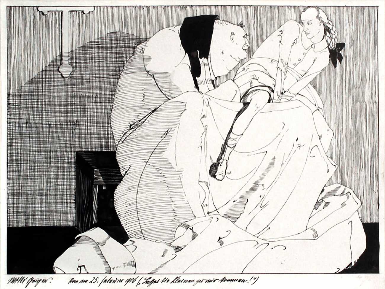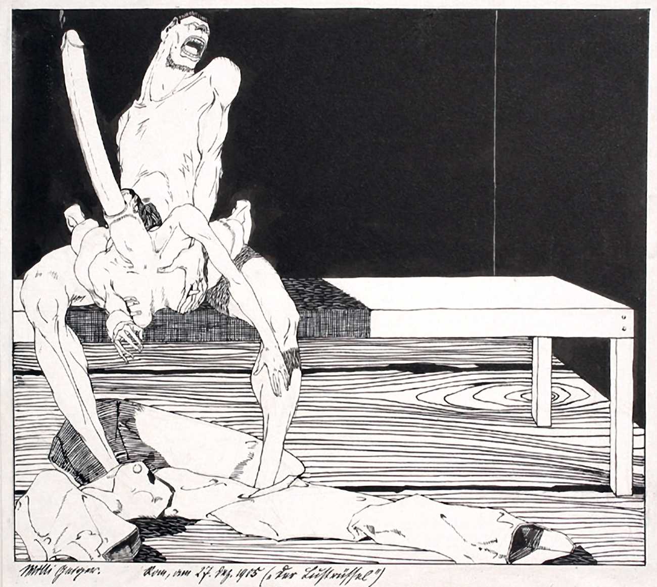 Das gemeinsame Ziel und Andere (The Common Goal and Others) is Willi Geiger’s only portfolio to deal specifically with sex and power; its banning and partial destruction by the Reichsgericht (Imperial Court) of Leipzig being a salutary reminder that such transgressive art was all too often met with official denunciation. After this traumatic experience Geiger produced individual etchings with an erotic theme, but never another series.