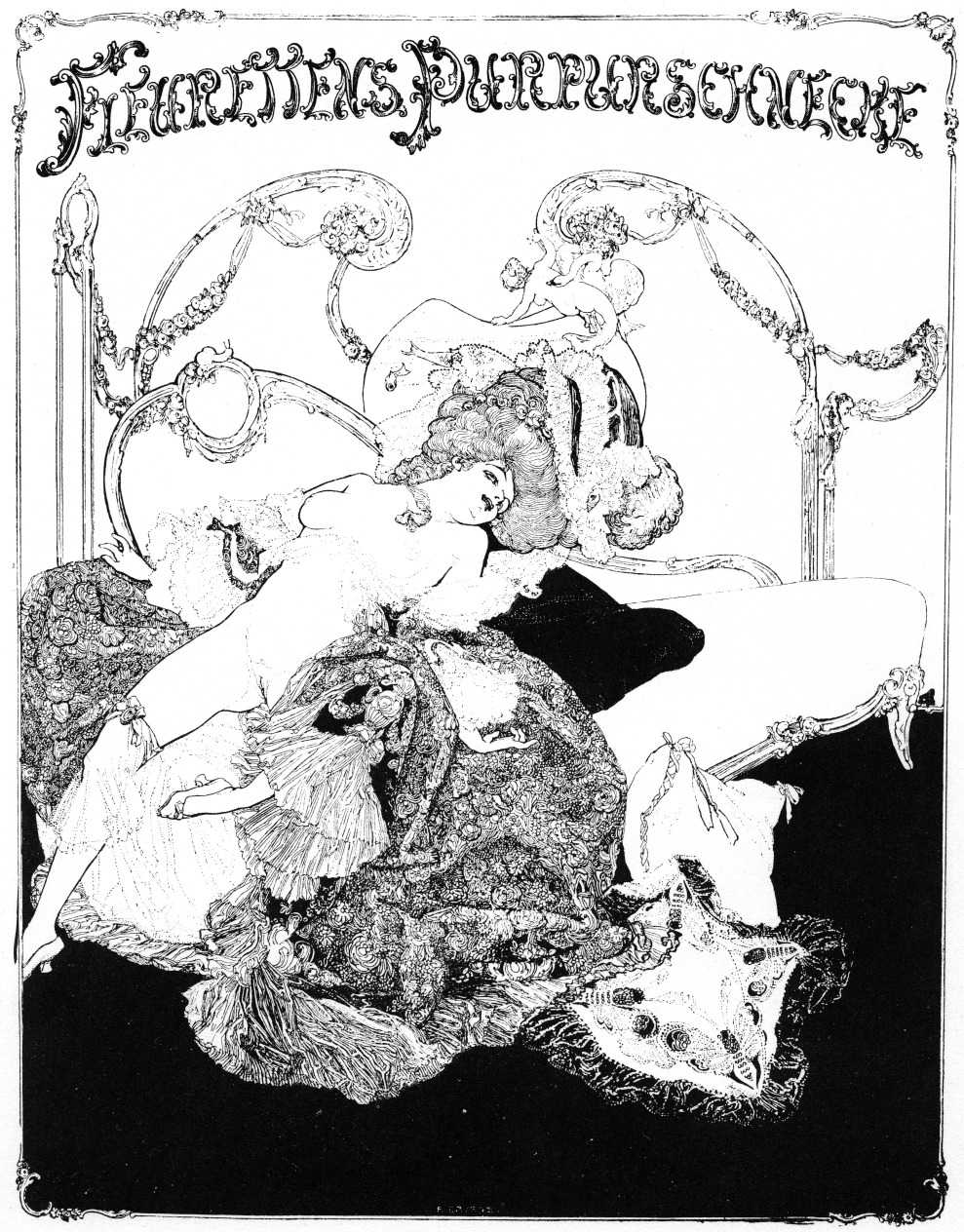 The full title of this portfolio of black and white drawings is Fleurettens Purpurschnecke: Erotische Lieder und Gedichte aus dem achtzehnten Jahrhundert gesammelt; the volume was published by Munich bookseller C.W. Stern.