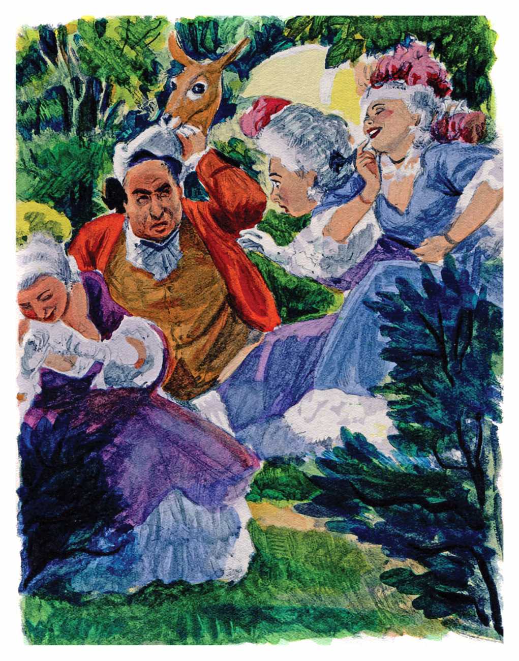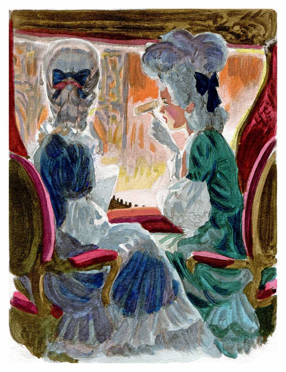 As with his colourful illustrations for Le journal d’une femme de chambre, Sainte-Croix’s images for Julie are bright and full of life.