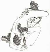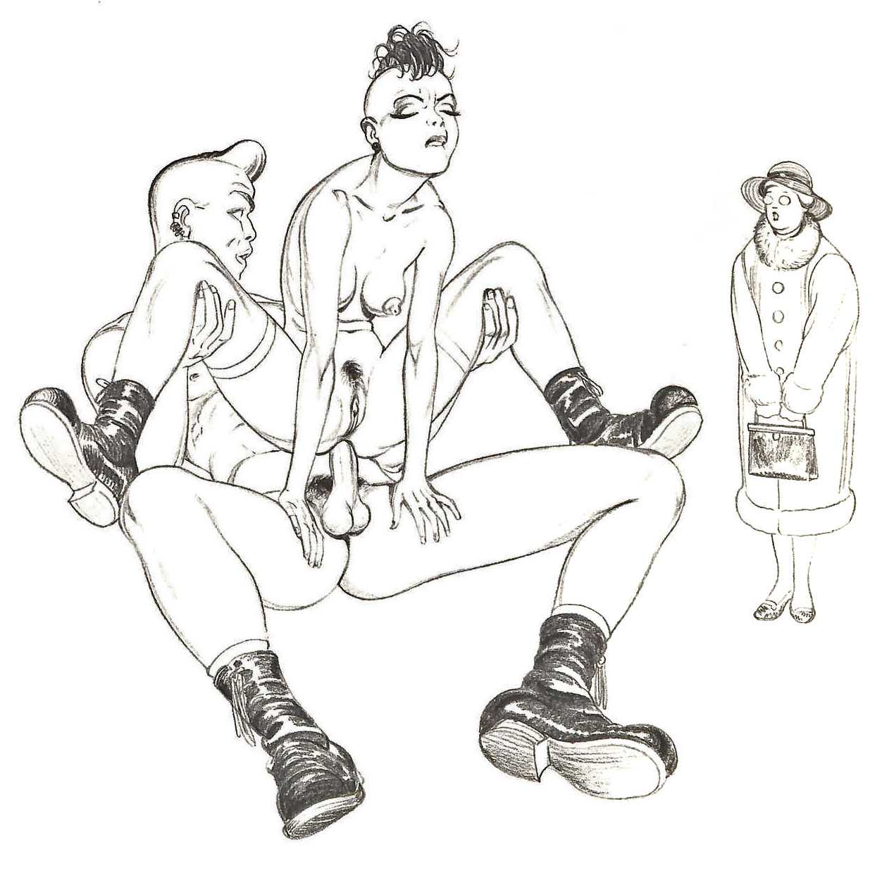 The last of Silvio Cadelo’s three specifically erotic illustration commissions was for a collection of Pierre Louÿs’ poems, in this edition titled Les fleurs secrètes (Secret Flowers). The poems had already been published many times, but had never before been complemented by contemporary punk lovers disporting themselves in a manner that Louÿs would have loved if he had lived a century later.