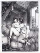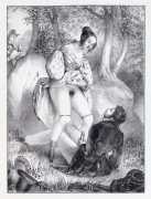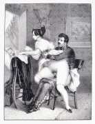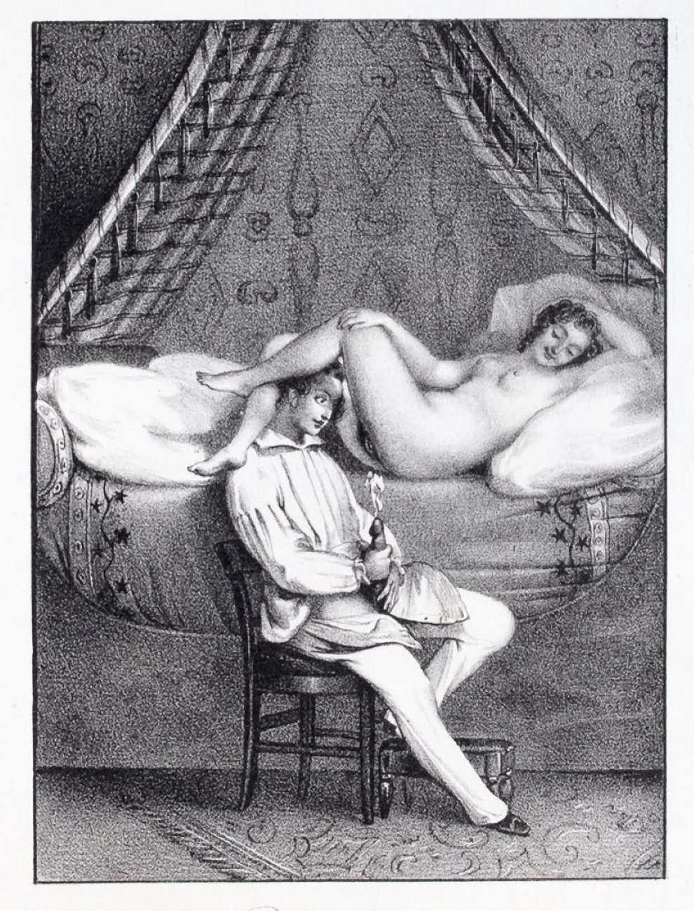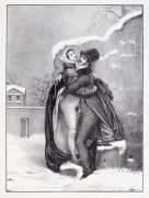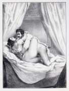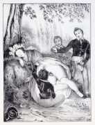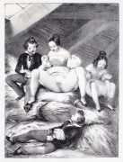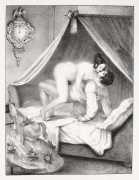 This rare album of uncoloured Devéria prints was published in Brussels some time between 1835 and 1840; only two or three copies are known to have survived, and each includes a slightly different set of plates. This is unsurprising – Devéria and his print-sellers regularly borrowed prints from other sets to make up a new product, and buyers and collectors mixed and matched Devéria prints and those from similar artists to produce their own unique portfolios. The one sold by Christie’s in 2006, which had belonged to Gérard Nordmann, contained 41 prints of which 24 were attributed to Devéria; their original owner had mounted the prints on boards and numbered them, telling us more about his (presumably his) taste than the original source of the prints.