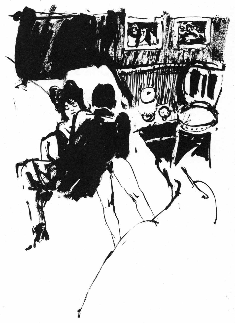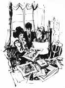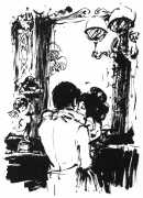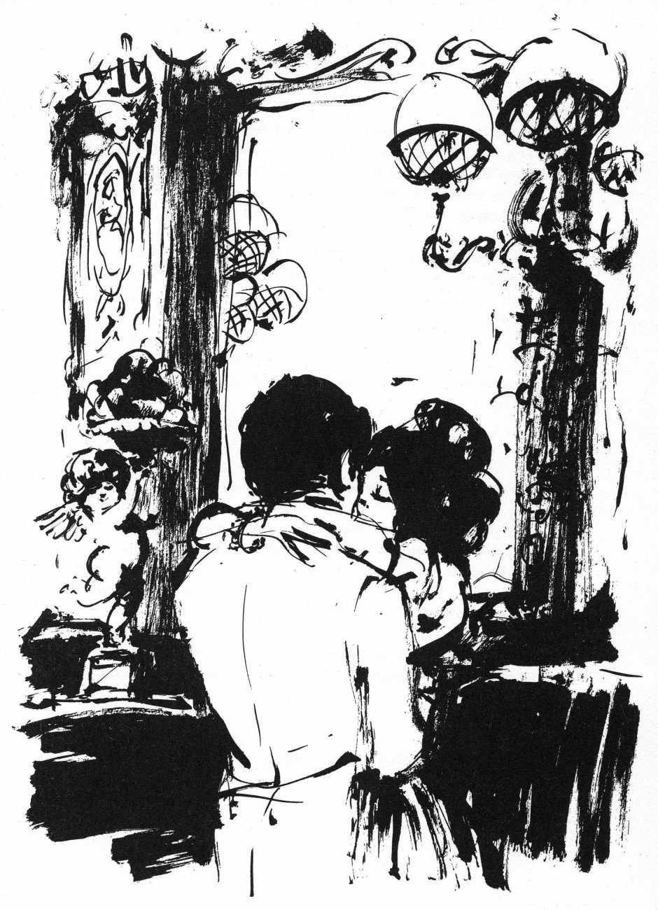 The Charroux illustrations for this edition of James Grunert demonstrate that the artist had now fully developed a mature pen-and-ink style, able to create a meaningful facial expression or background furnishing with the absolute minimum of strokes.