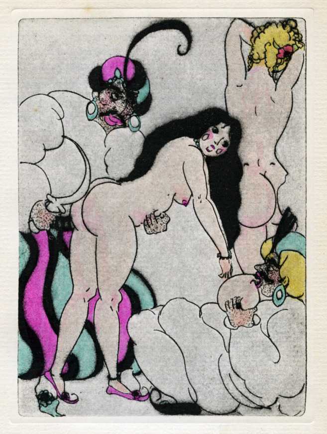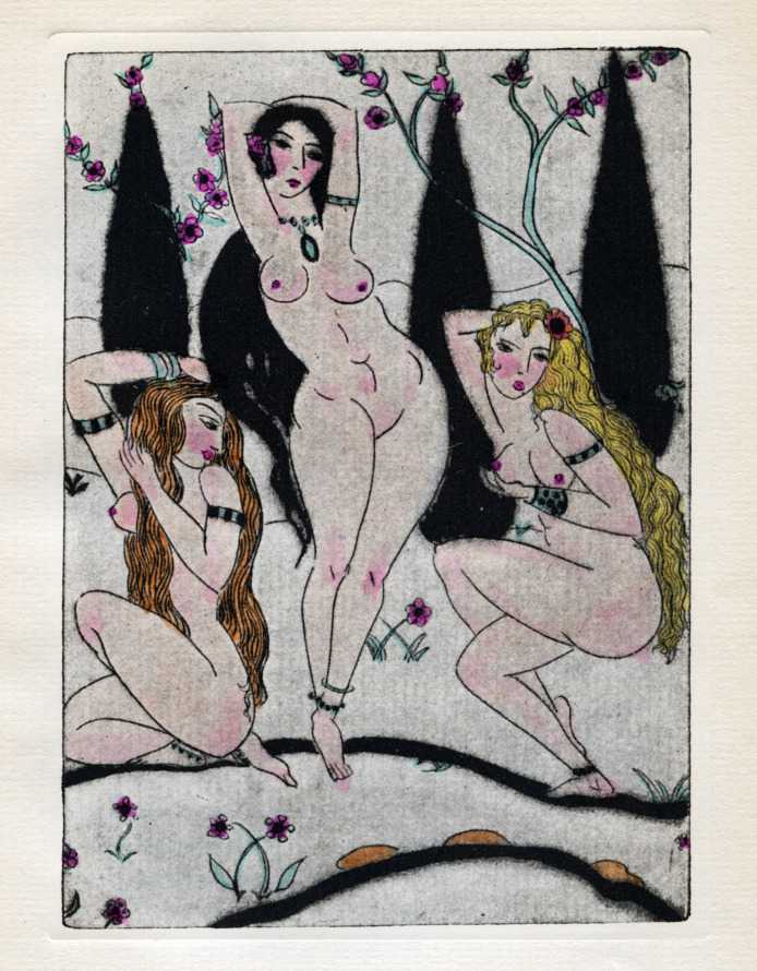 As with most of these limited editions, the binding was high quality, including three of Clara’s trademark nudes gold-blocked on the spine and front board. Of the 1,000 copies printed, the plates in the more expensive 350 were coloured by hand.