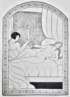 The French writer Pierre Loüys already had a following in the United States for his ribald tales, and Tice’s illustrations proved an ideal accompaniment to his texts. This presented her with an artist’s dream opportunity – no expense was spared on handmade paper, fine typography, and de luxe bindings. She was instructed to disregard reproduction costs, so plates were often produced in a wide range of colours, including silver and gold.