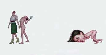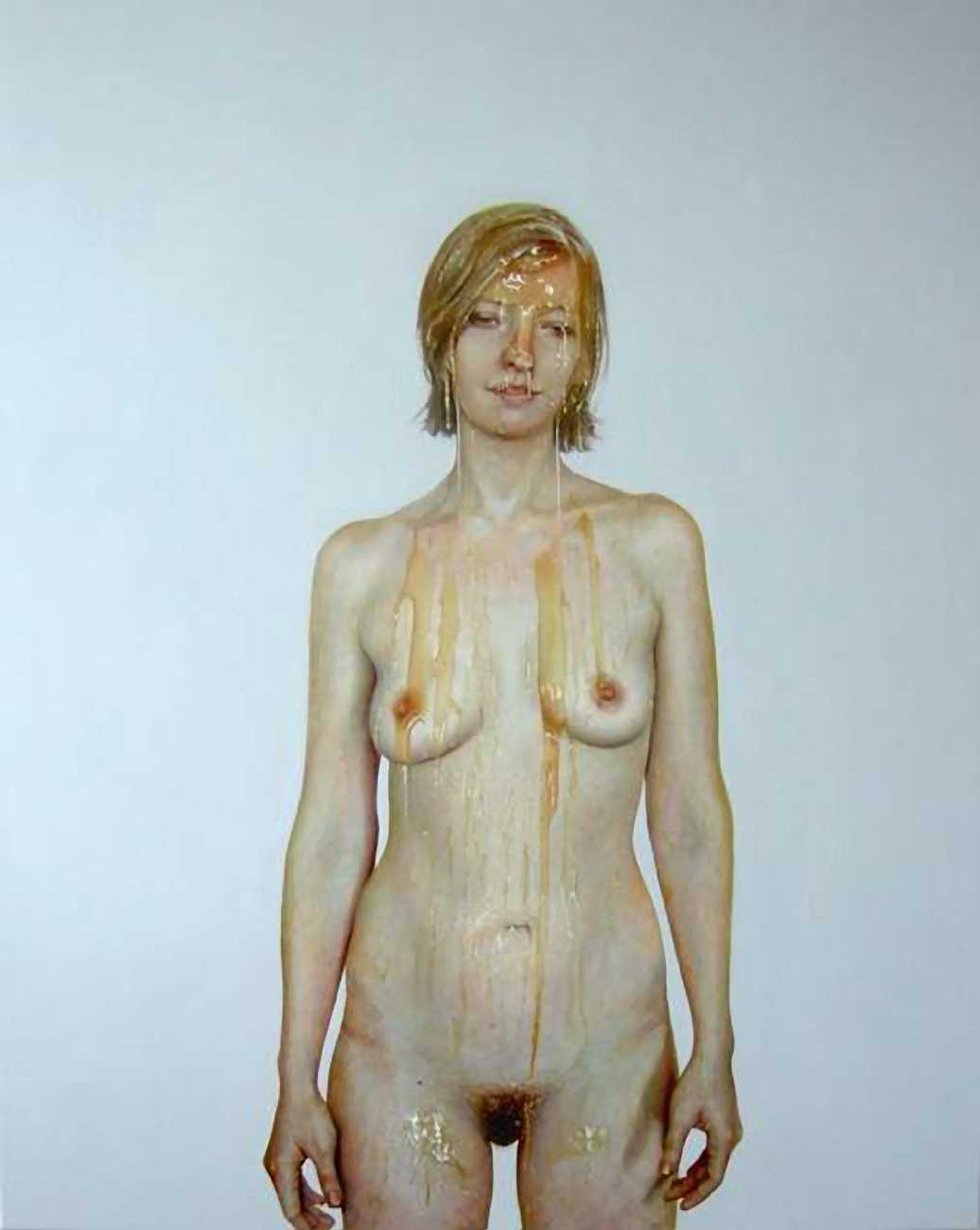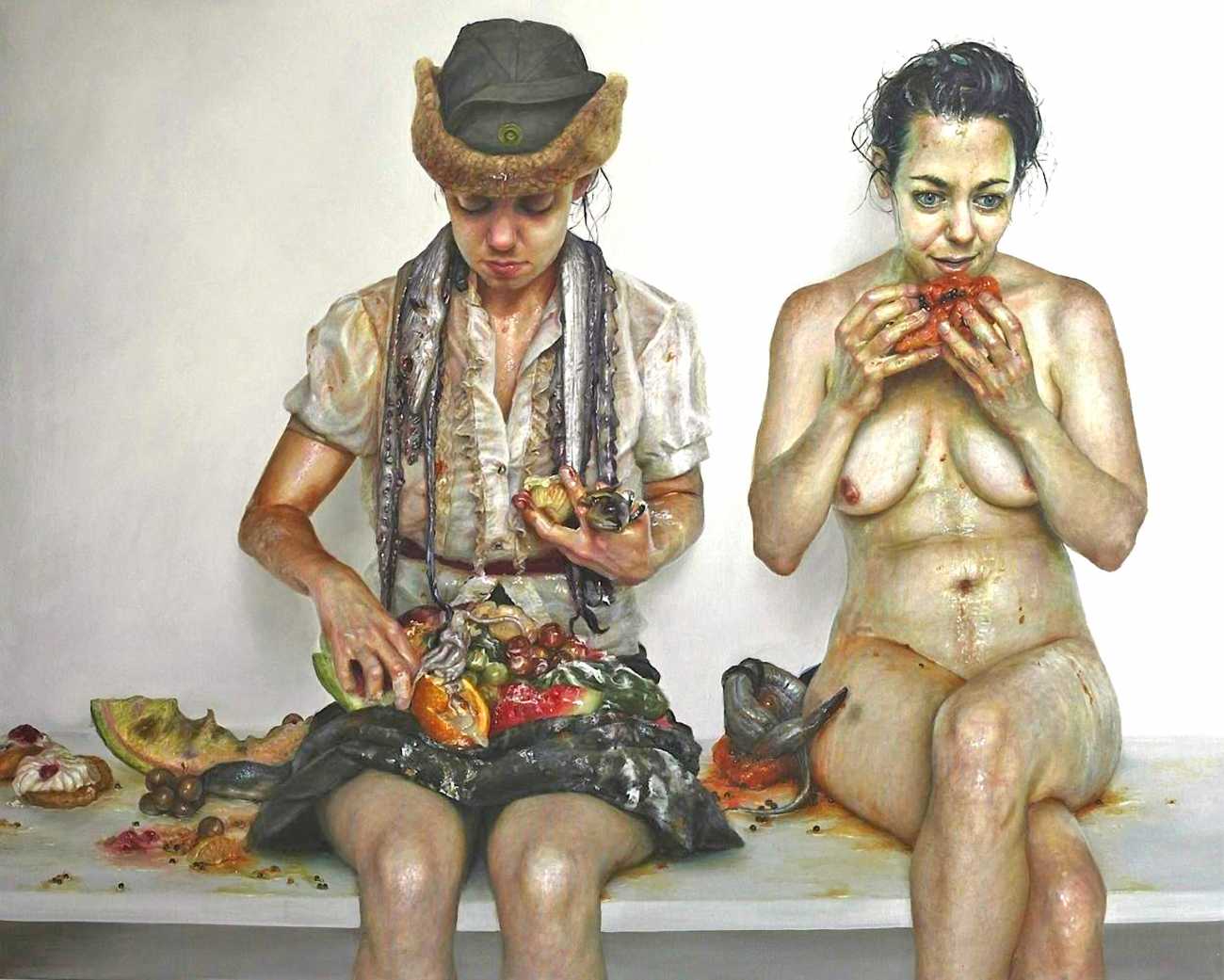 What to make of them? As with much experimental and cutting-edge art, much of their point is to make us think and question how we see our world. In these paintings the focus is very much on questions of messiness and disgust, risk and consent, intervention and sharing, all in the context of a women-only setting.