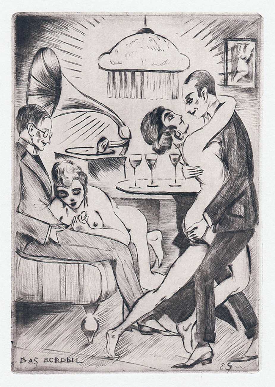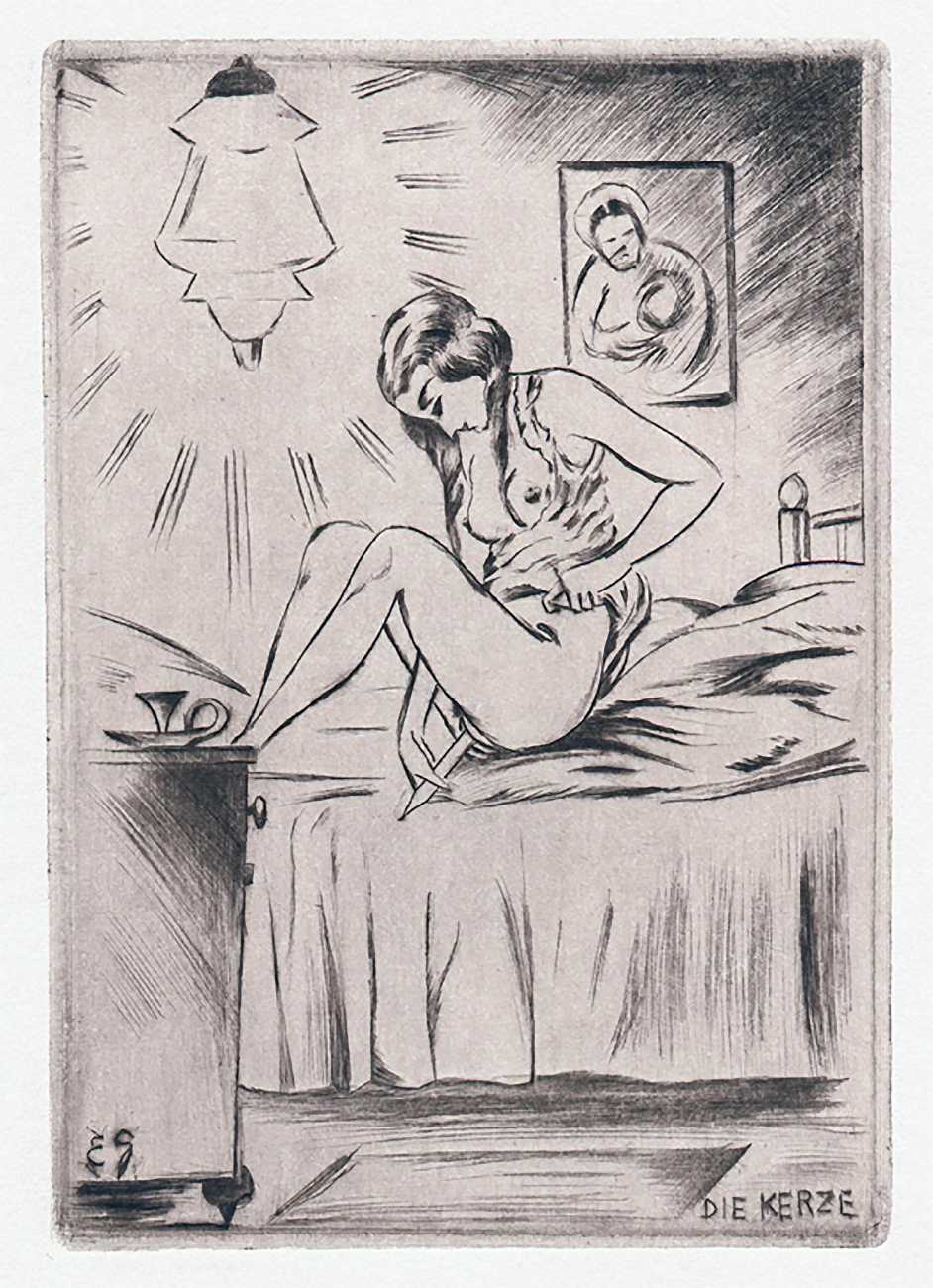 Die Laterne (The Lantern) is an original and intelligent collection of sexual vignettes, unified by the theme of the light source which appears in different forms in each of the images. Several of them feature same-sex couplings, very much a subject of interest among freethinkers in Weimar Germany.