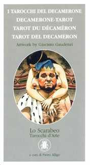 The Decameron Tarot was the fourth Tarot set designed by Gaudenzi for the specialist Italian playing card company Lo Scarabeo. The first was a Celtic Tarot published in 2000, a co-production with fellow artist Saverio Tenuta for which Gaudenzi created the 21 major arcana cards and Tenuta the others. This was such a success that Scarabeo went on to commission The Golden Dawn Tarot (Tarocchi del’ Alba Dorata) in 2001, and The Dürer Tarot, created in the style of Albrecht Dürer’s paintings and engravings, in 2003.