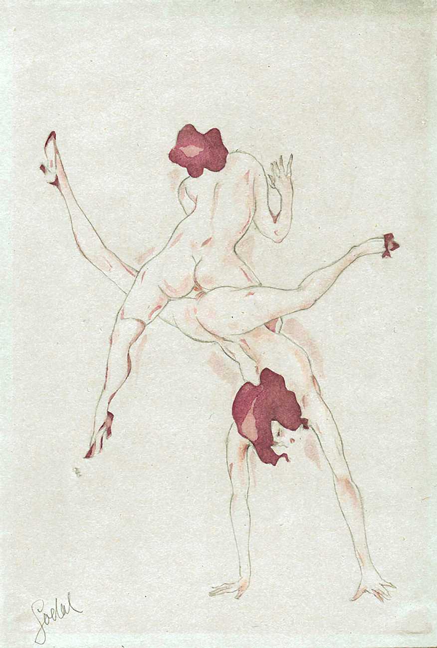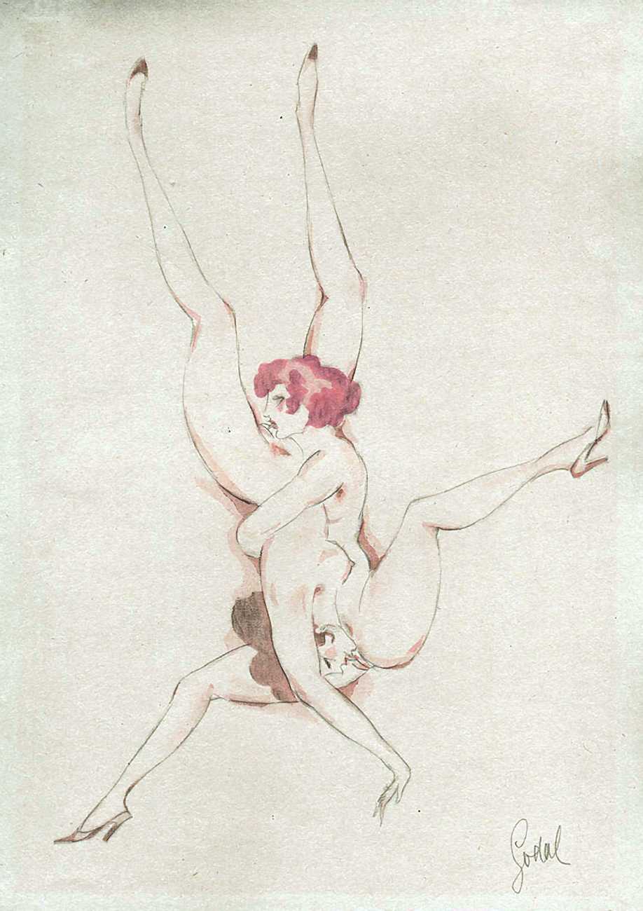 We have added the title Erotische Spiele (Erotic Games) to this portfolio of typical Godal drawings from the early 1920s – a happy medley of straight, gay and lesbian encounters no doubt put into a folder by a satisfied collector. As with Das Lusthaus der Knaben Godal skilfully uses a limited range of colour washes to highlight his drawings, which were probably made very quickly between cartoon commissions and his more detailed etchings for Revolution.