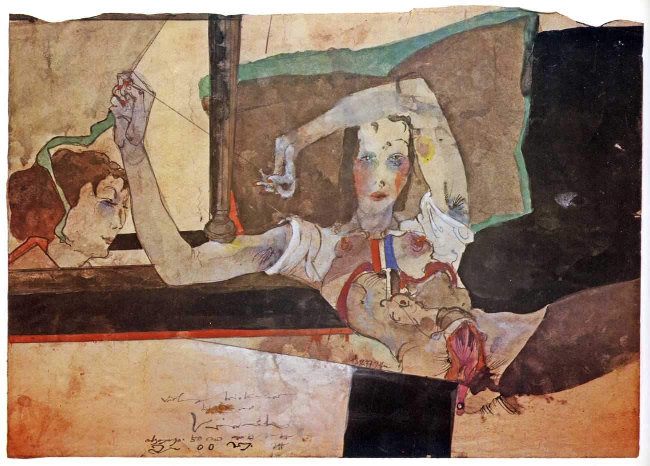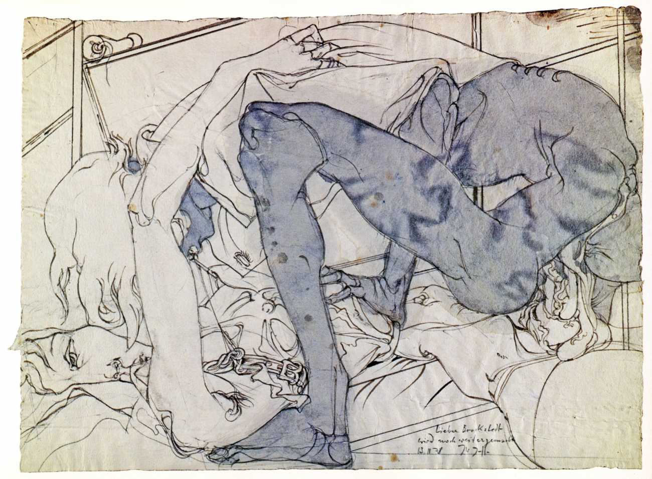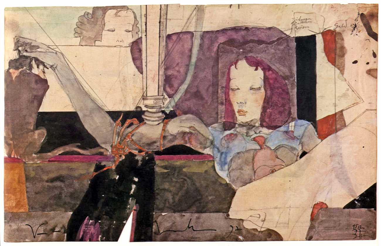 Janssen’s third and last marriage was with Verena von Bethmann-Hollweg, and lasted from 1960 to 1968. The next decade, one of his most productive artistic periods, was also his most sexually active, his lovers including Gesche Tietjen, Roswitha Hartung, Bettina Sartorius, Birgit Jacobsen, Viola Rackow, Kerstin Schlüter, Annette Kasper, Britta Kerinnes and Heidrun Bobeth. Verena, she of the perfect arms, remained a constant memory, however, and the Phÿllis series of paintings, made between late 1977 and mid-1978, makes reference to a remark she made to him after a holiday on the island of Sylt, where she told him that ‘he couldn’t do watercolours properly’. The immediate muse for the series, however, was Birgit Jacobsen, and Janssen said of the paintings that ‘the hand, not the brush, was guided by the memory of Birgit’s anatomy’.