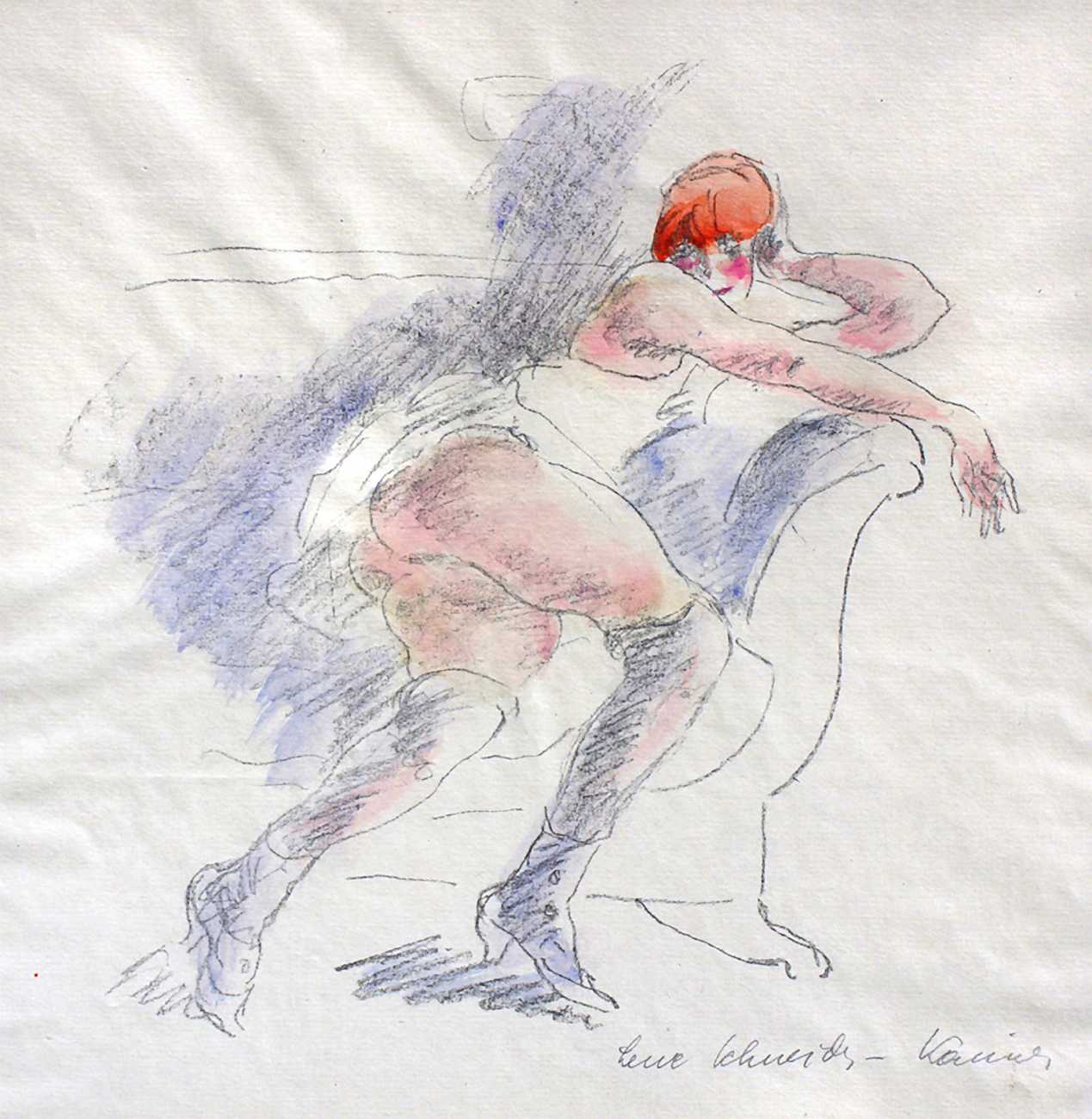 The title of the portfolio suggests a degree of self-reflection of the artist’s own sexual identity and imagination, both as the inhabitant of a female body and looking at that body in relation to other women. The result is some of the most honest and endearing drawings from the early years of Weimar Berlin, sensitively drawn and tenderly coloured.