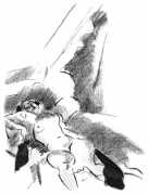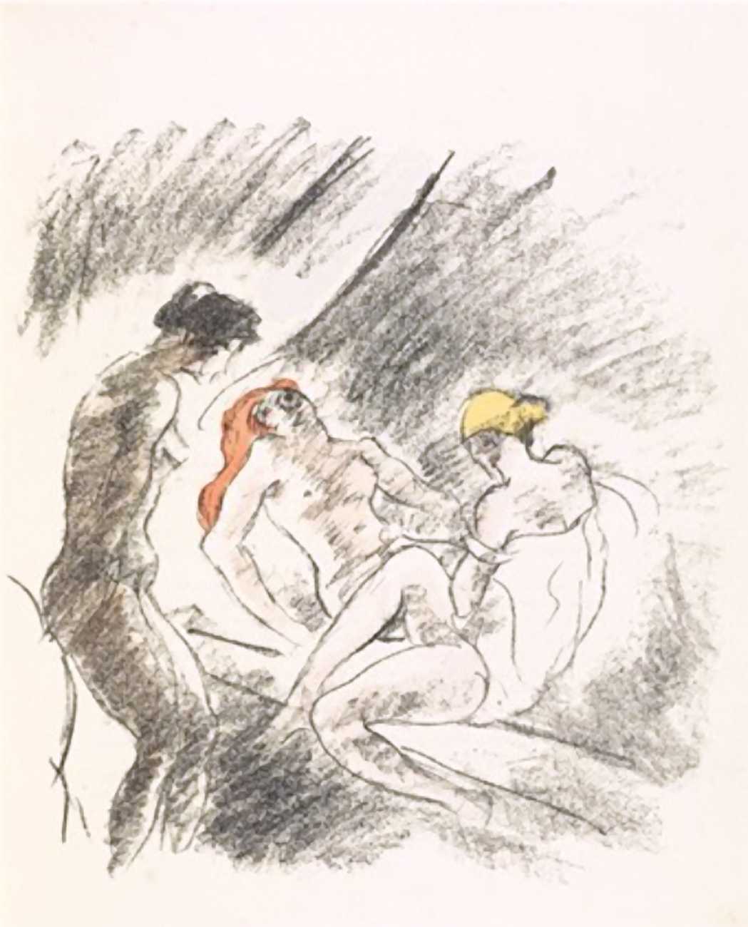 Given that the three most explicitly erotic portfolios produced by Lene Schneider-Kainer during the highly productive Berlin years are all on lesbian themes, it is more than likely that the subject was attractive to her for personal as well as artistic reasons. She was a very close friend of the playwright and poet Else Lasker-Schüler, of whom Lene painted a strong and expressive oil painting in 1915, and Else was well known for her bohemian lifestyle and sexual experimentation.