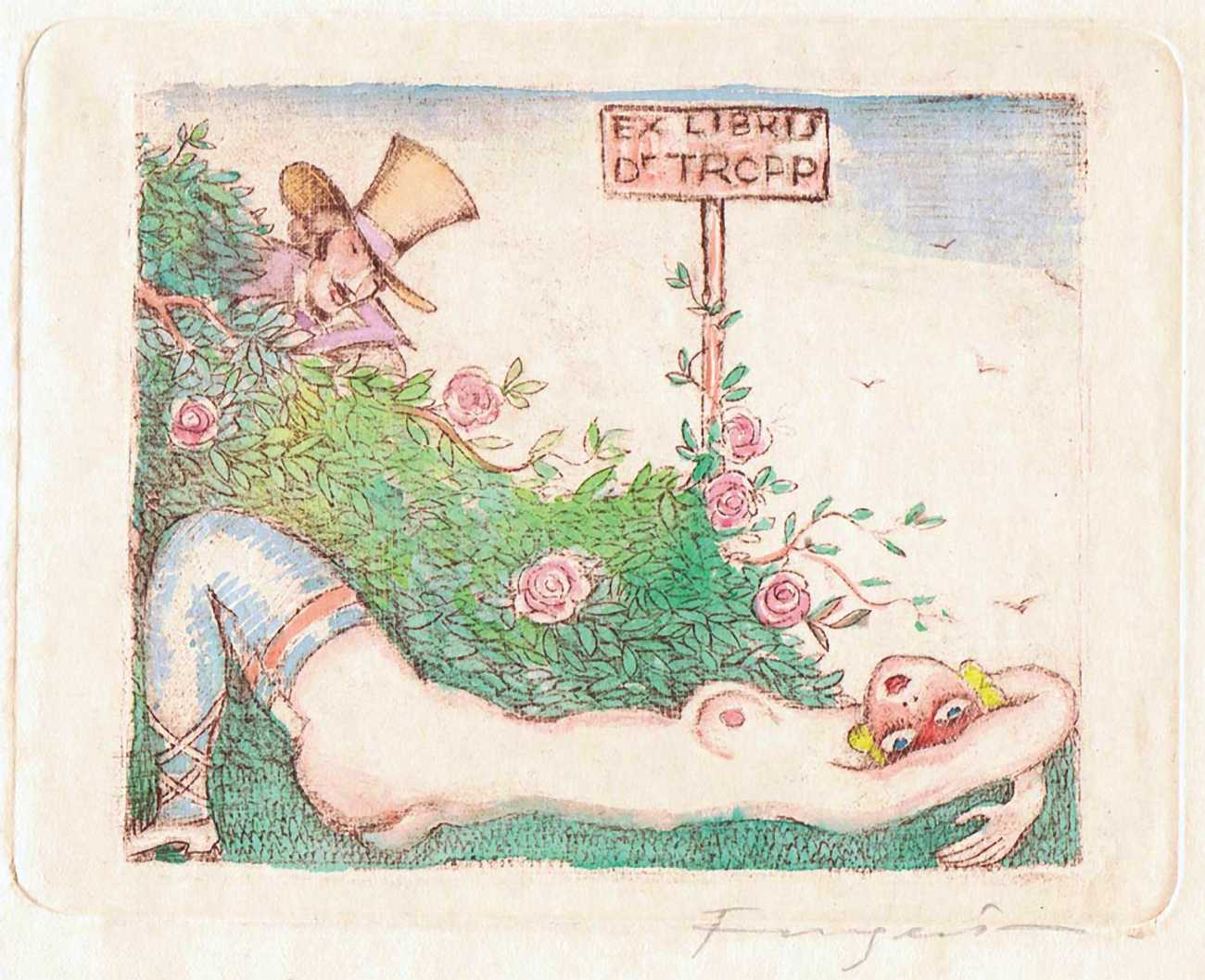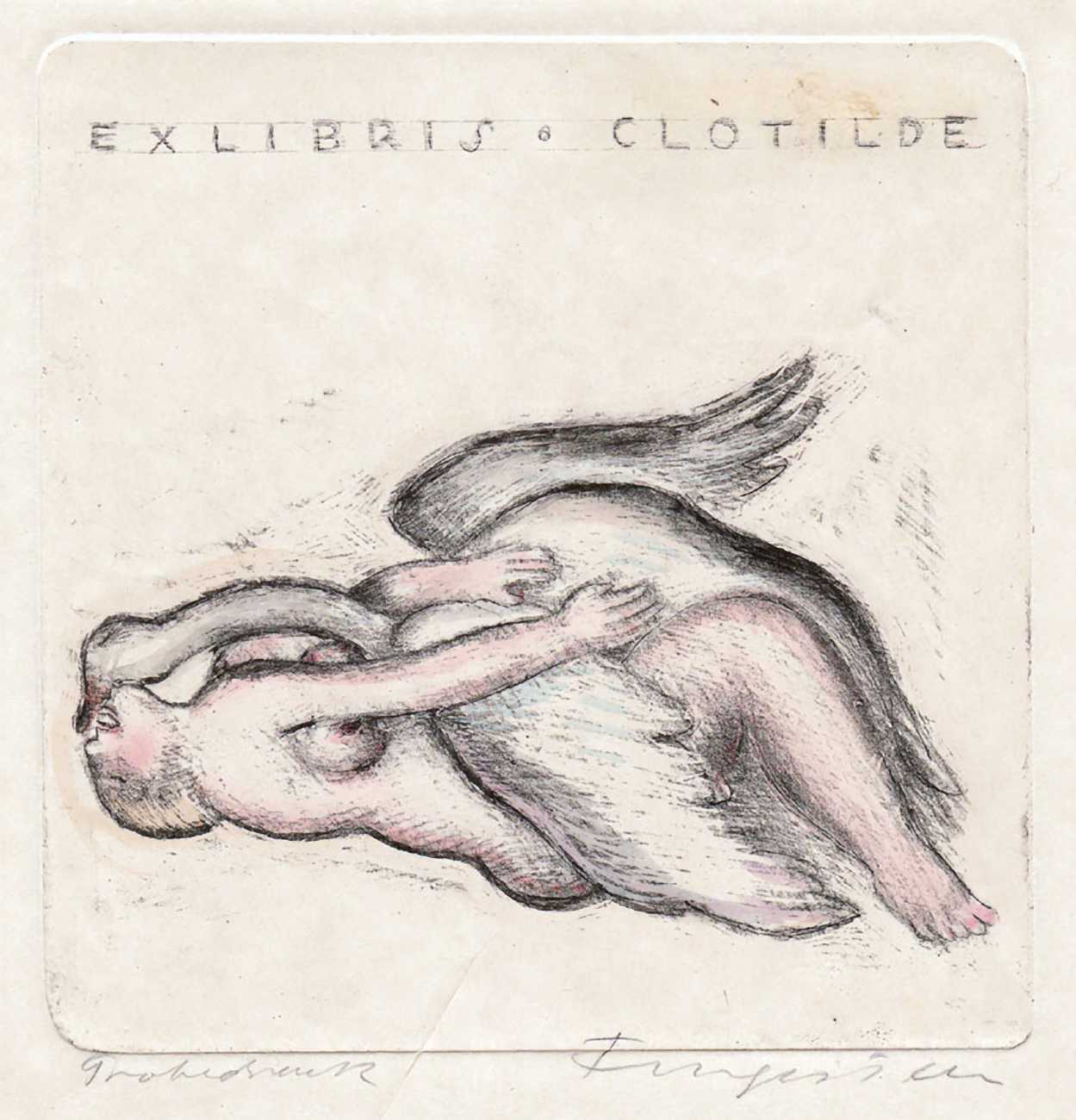 Here we include just a small selection of his most erotic bookplates, some clearly for paying clients (including those who understandably asked just for initials), but also some which appear to be for particular women friends including Clotilde and Anita.