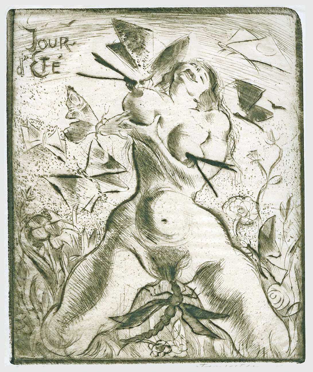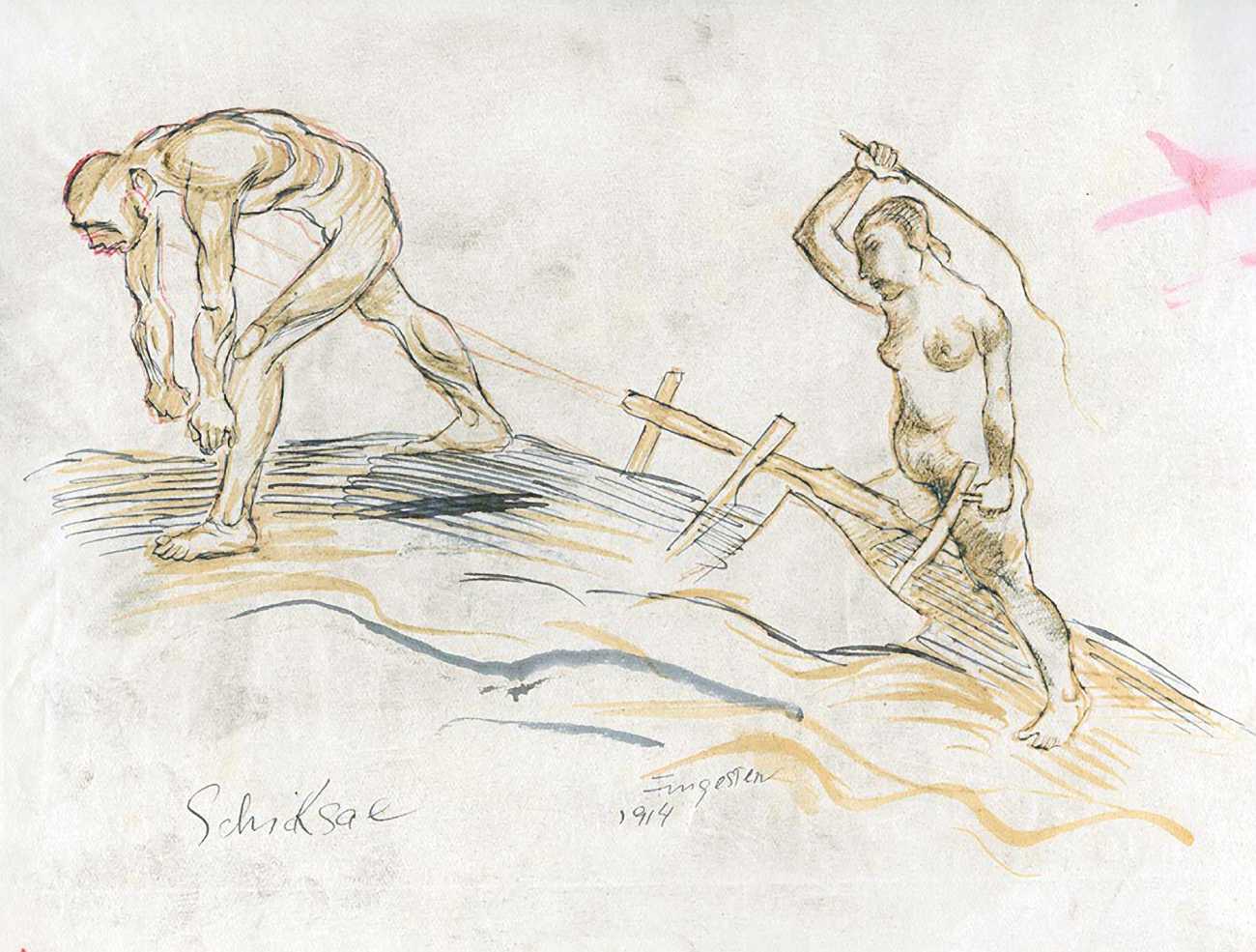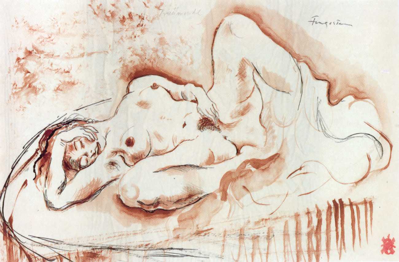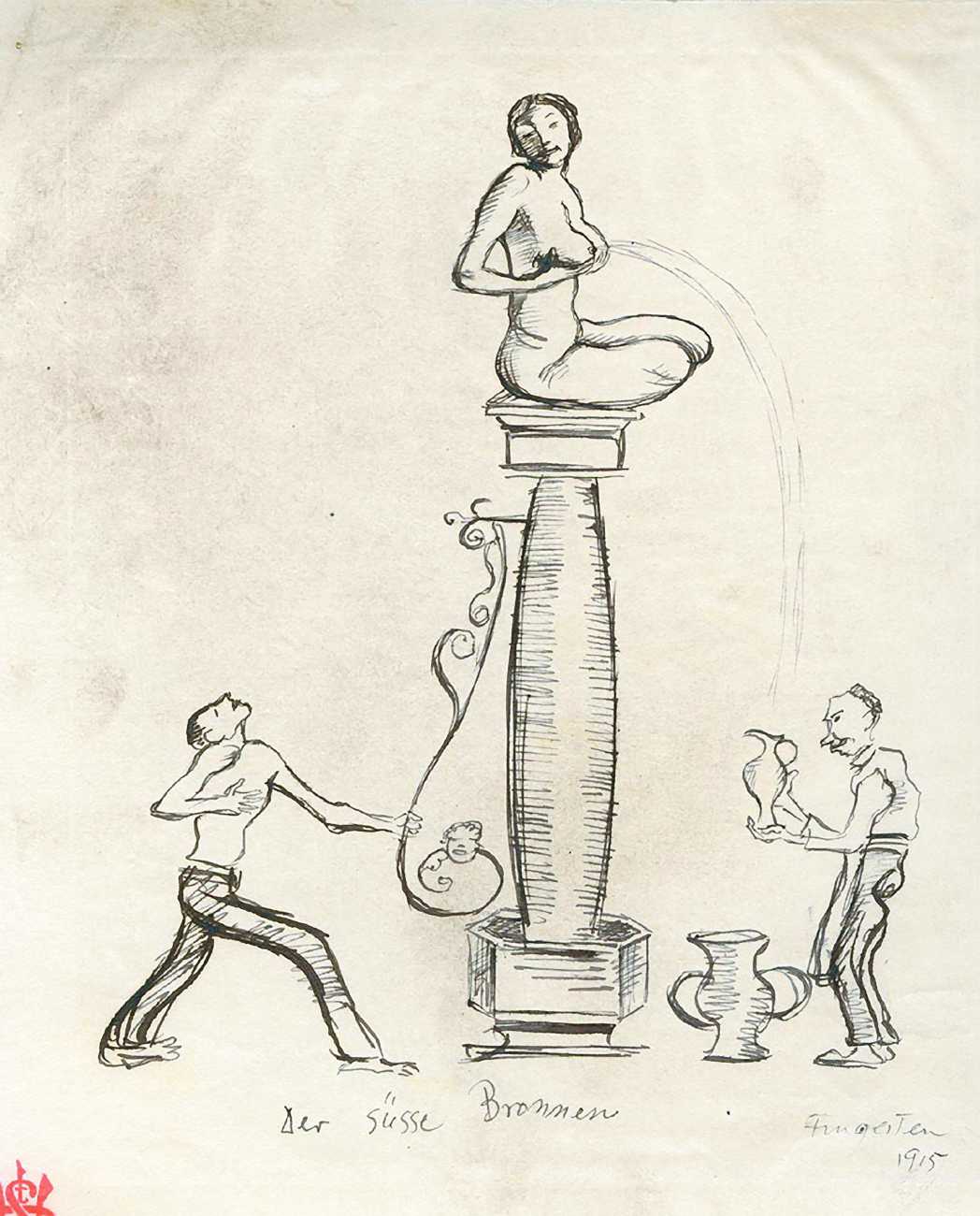 In 1923, when Fingesten was at the height of his popularity, the Cologne collector Heinrich Stinnes (1867–1932) commissioned a personalised portfolio of drawings and etchings for his vast collection. The selection Fingesten put together for Stinnes consisted of 40 etchings, including several bookplates, and 51 original drawings. He titled it Improvisationen über das Thema Liebe (Improvisations on the Theme of Love). It was no doubt a particularly lucrative commission.