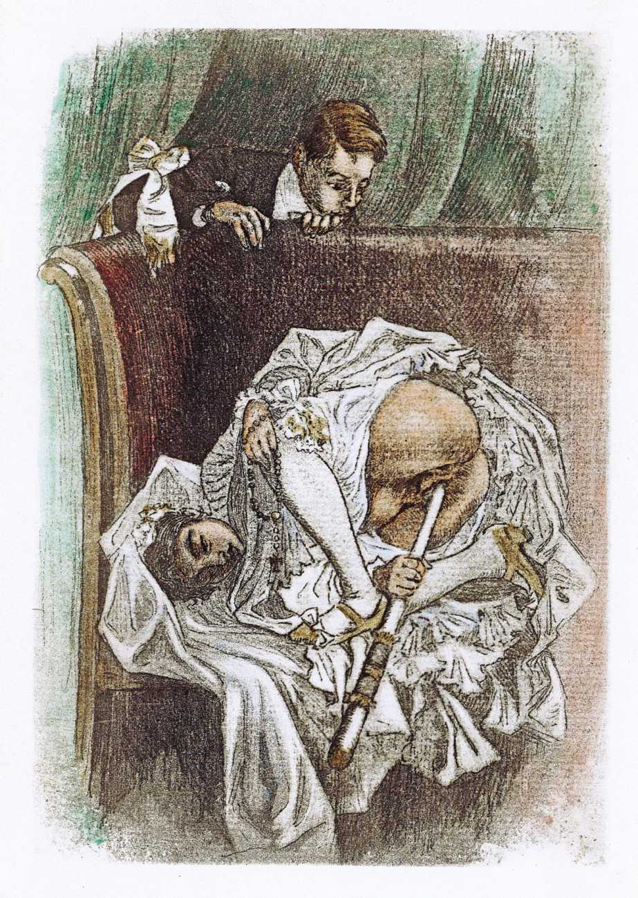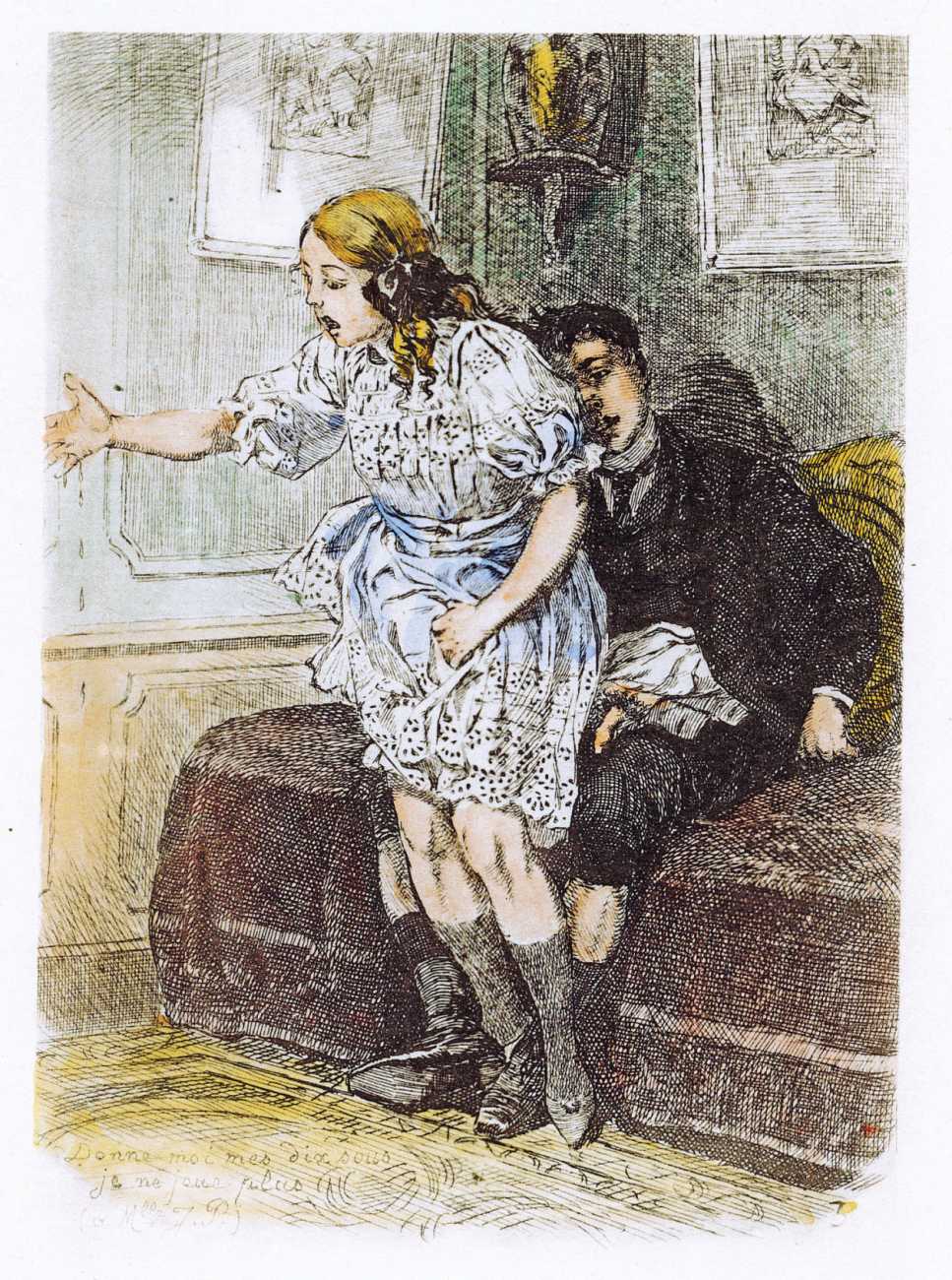 These are the twelve plates from La grande danse macabre des vifs of 1905 repurposed to illustrate Pierre Louÿs’ irreverant spoof sexual instruction book for little girls Manuel de civilité pour les petites filles or Young Girl’s Handbook of Good Manners, the history of which you can read here.