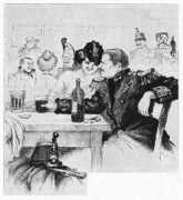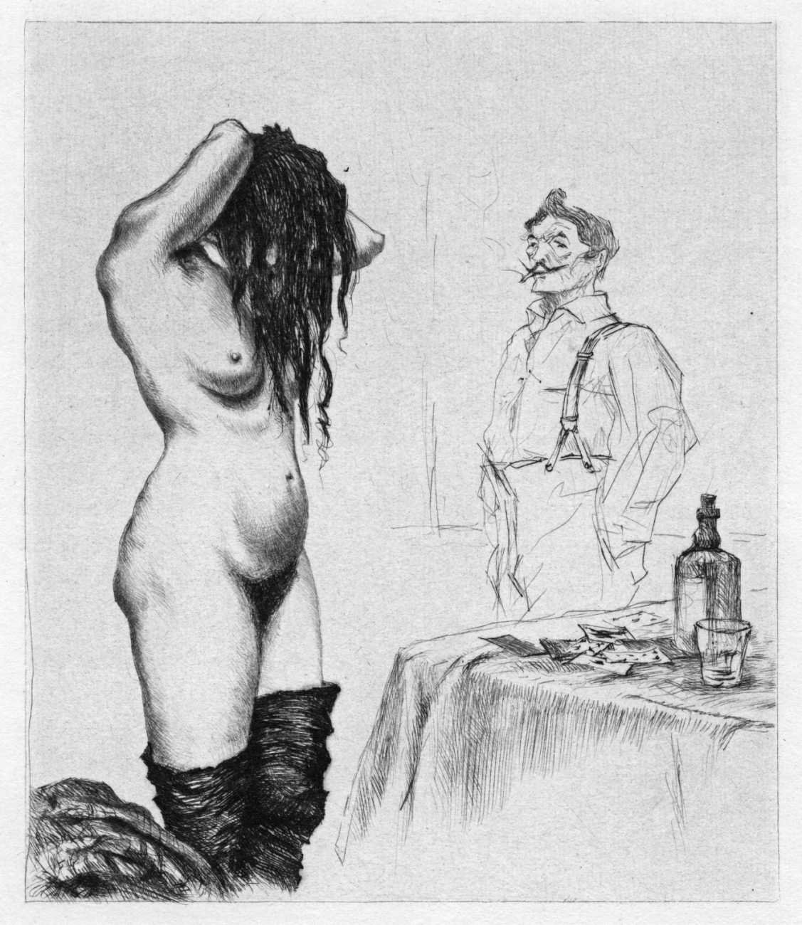 In a contemporary review of this illustrated edition, the critic André Doderer wrote, ‘Rarely does such a conscientious artist love his art with this much fervour and understanding of the work he is illustrating. One feels that he was enamoured of the work, yet able to choose the most significant passages for illustration. This remarkable volume allows us to appreciate Paul-Louis Guilbert’s effort and understanding.’ Guilbert’s illustrations for La fille Élisa are raw and dark, and paint a vivid picture of late nineteenth-century prostitution.