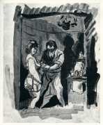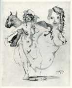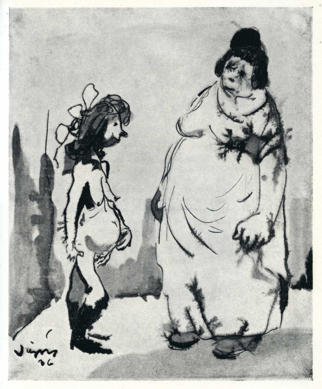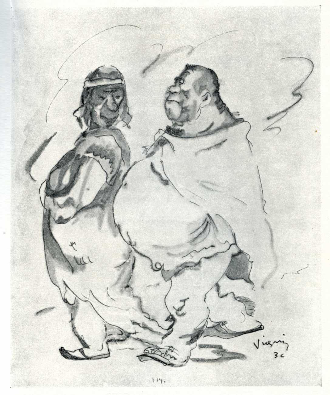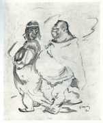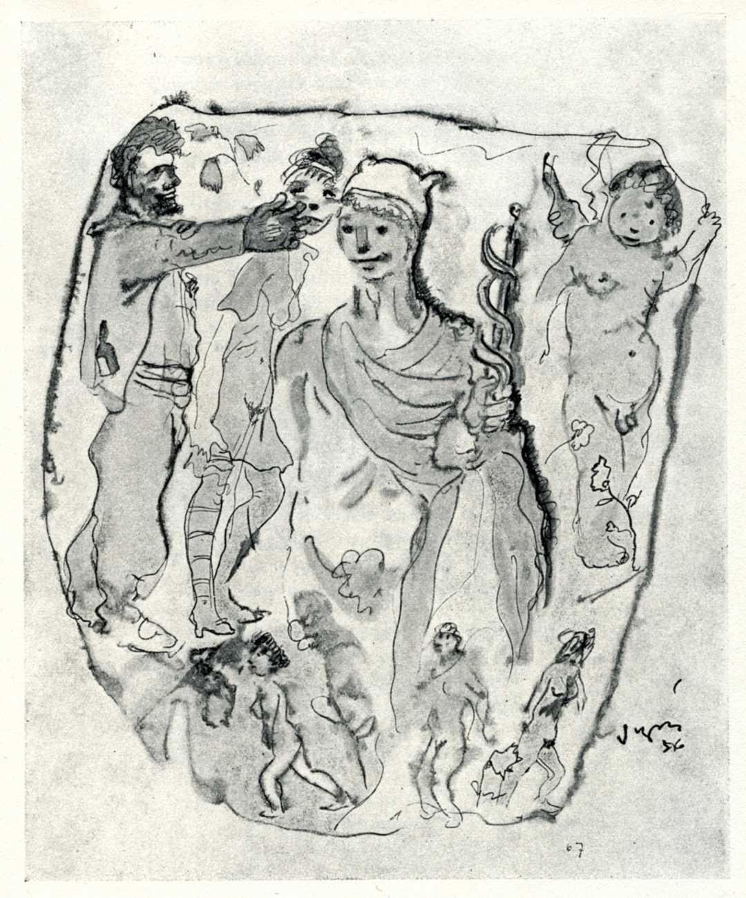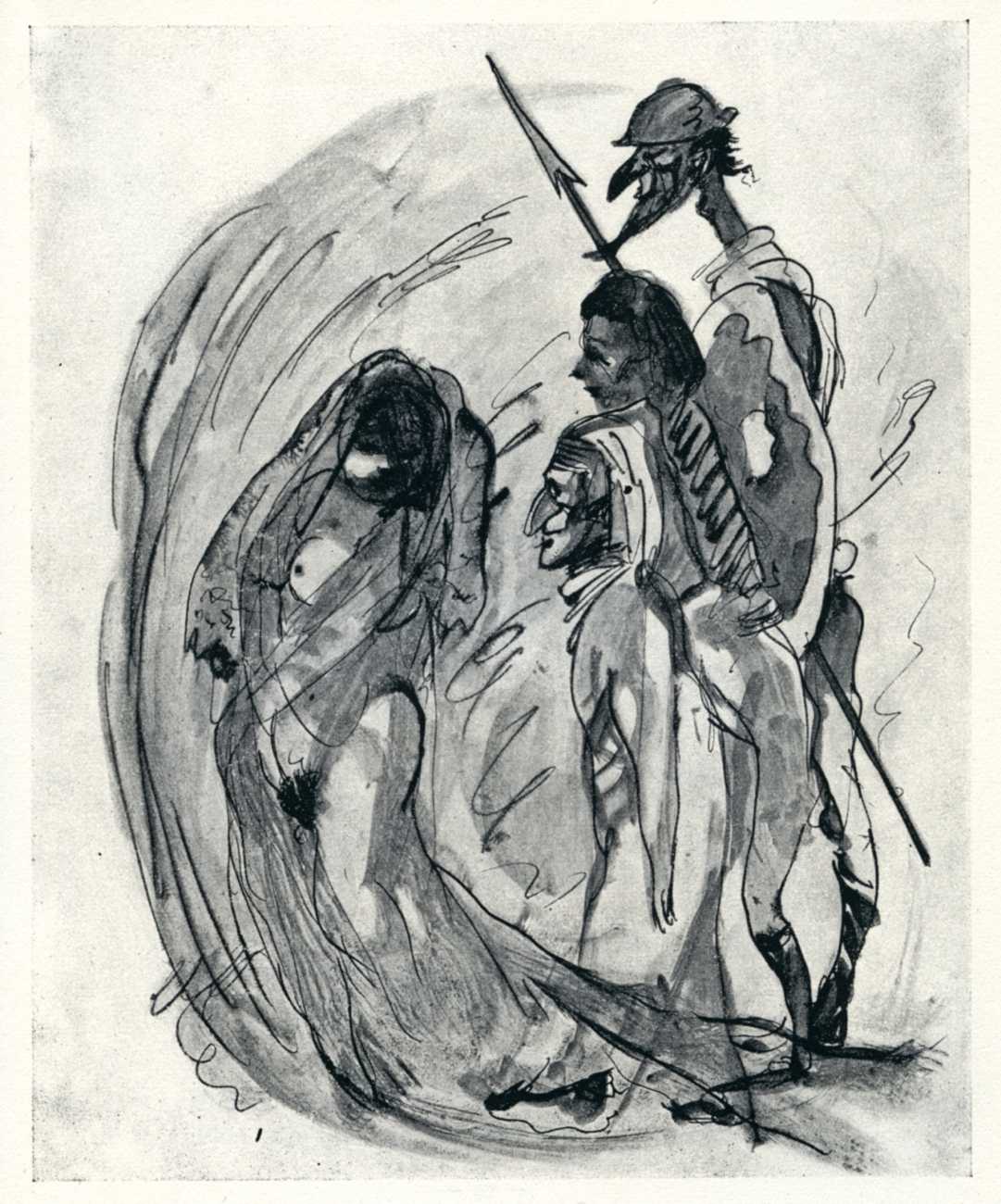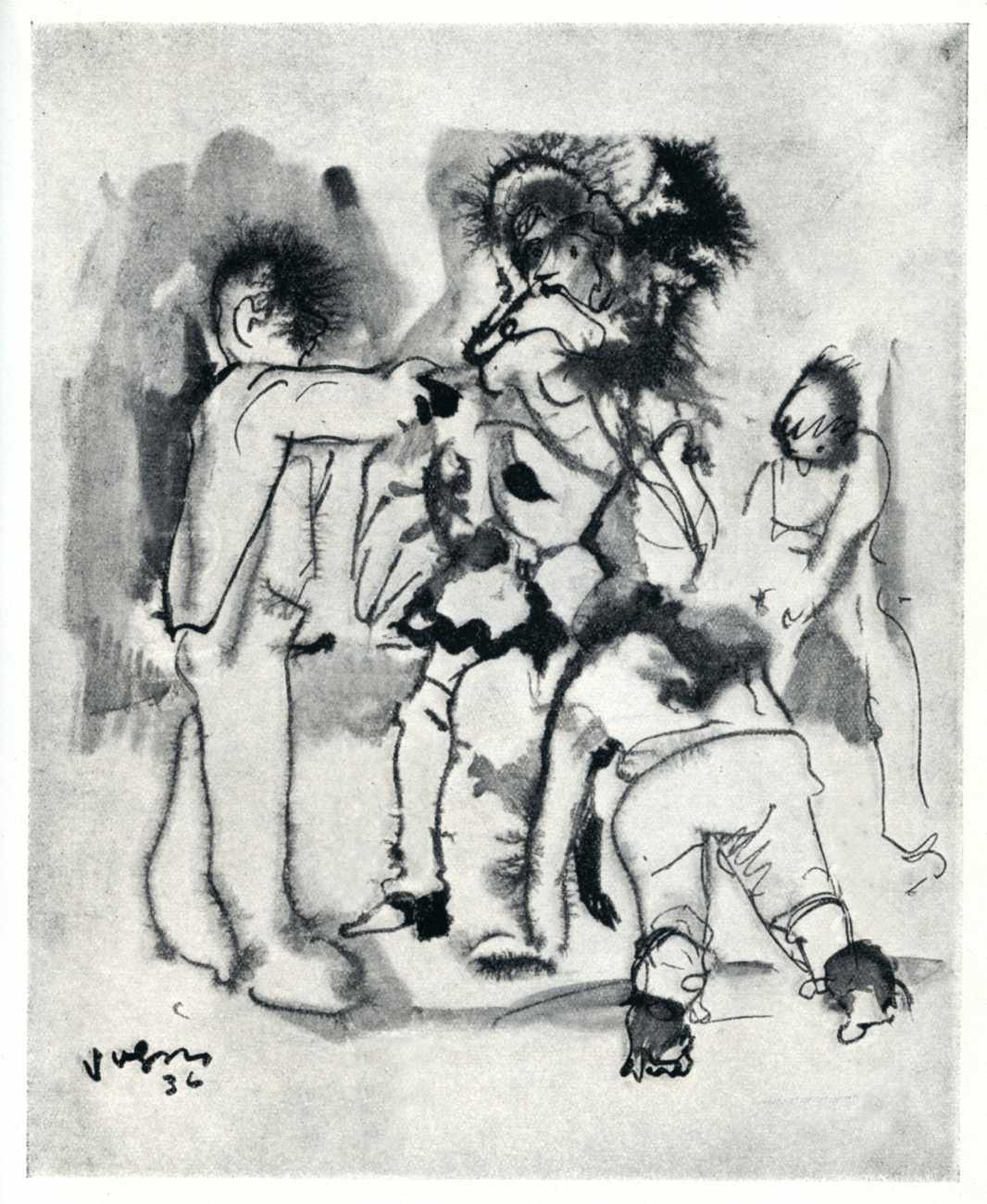 Sylvain Vigny’s drawings, in his trademark loose pen and wash style, are quite remarkable, even though the reproductions in the book do not do justice to the originals, probably lost forever. With a few deft strokes of the pen and ink washes he evokes real characters in believable situations, and what a variety of characters. He also has an uncanny ability to draw people – women anyway – both clothed and unclothed at the same time, a skill shared with very few other artists, notably Chas Laborde in his 1923 L’inflation sentimentale, which you can see here. Several of the plates feature naked groups of dancers, reminiscent of Martin van Maële’s La grande danse macabre des vifs, with which Vigny was no doubt familiar.