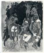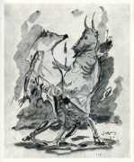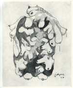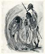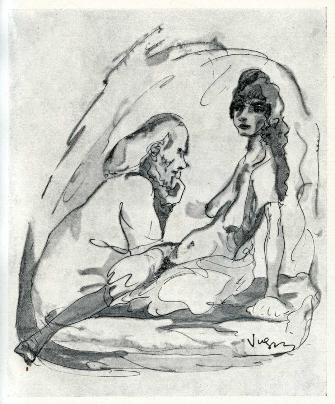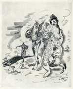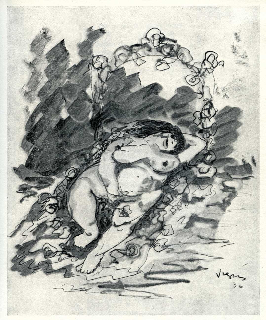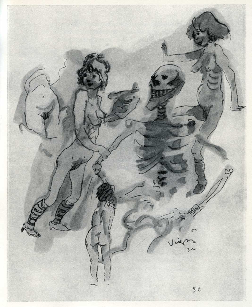 La danse macabre, first published in 1920, was intended to be part of a much longer work entitled Stat Crux dum Volvitur Orbis (The Cross Stands while the World Turns), but only the first four parts – La danse macabre, Frère Tranquille, La guirlande à l’épousée, and Frère Tranquille à Elsinore, were completed before his untimely death, run over by a carriage while inebriated close to his home in Paris’s rue Visconti. Maybe fortunately only La danse macabre remained in print for any length of time, but its themes of longing, sex and death clearly struck a chord with Vigny. These forty illustrations made it into the revised edition of the book published in 1937, though the numbering on some of them suggest that he may have made considerably more, maybe as many as 150.