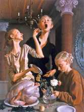 If content inheres in the dissolution of subject and form, and if meaning is derived from our contemplation of this dissolution, what are we to make of John Currin’s effort so far? In Currin’s work, form and subject do not dissolve to release content; they remain obdurately separate, and we are forced to look through disparate lenses at the same time, distorting our vision. Asked to find meaning in the very cut that opens between these forms and these subjects, we cannot talk the formalist talk without falling on our faces in front of a frothy ‘heartless’ ingénue, a disastrous Thanksgiving. If you read the critics, none has found a way to speak about this work without separating, so to speak, the yolk from the white.