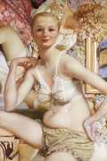 It has been a while since we were asked to address the full affective registers of visual art, to find ourselves reassessing our stake in its ability to interpret and illuminate, beyond the playground of lifestyles, hot tickets, and market allure. (I have been reminded, often, of another artist whose work caused similar outbursts of hyperbolic acclaim and derision, Julian Schnabel. Twenty years later, Schnabel is still a celebrity, but he dumped the art world for Hollywood’s greener pastures.) When I first saw Currin’s show, I gave it the most generous of interpretations, wanting to imagine Currin with a sympathetic gaze, depicting women, for example, as fashion victims, still beholden to outmoded cosmetic pressures and ideals. But the reading did not hold; it collapsed into wishful thinking. Currin pushes us away as he draws us toward, like a roadside crackup, or tabloid headline. He elicits our interest at the cost of our care. What if all he cares about is painting, if his subjects are only in service to a supreme indifference, verging on scorn? Are we complicit with this indifference, this contempt? Is every other, every alterity, merely a pretext for self-serving self-esteem? We are back, than, to modernist manners stripped of their consequence: James Joyce and T. S. Eliot, paring their fingernails, writing sonnets.