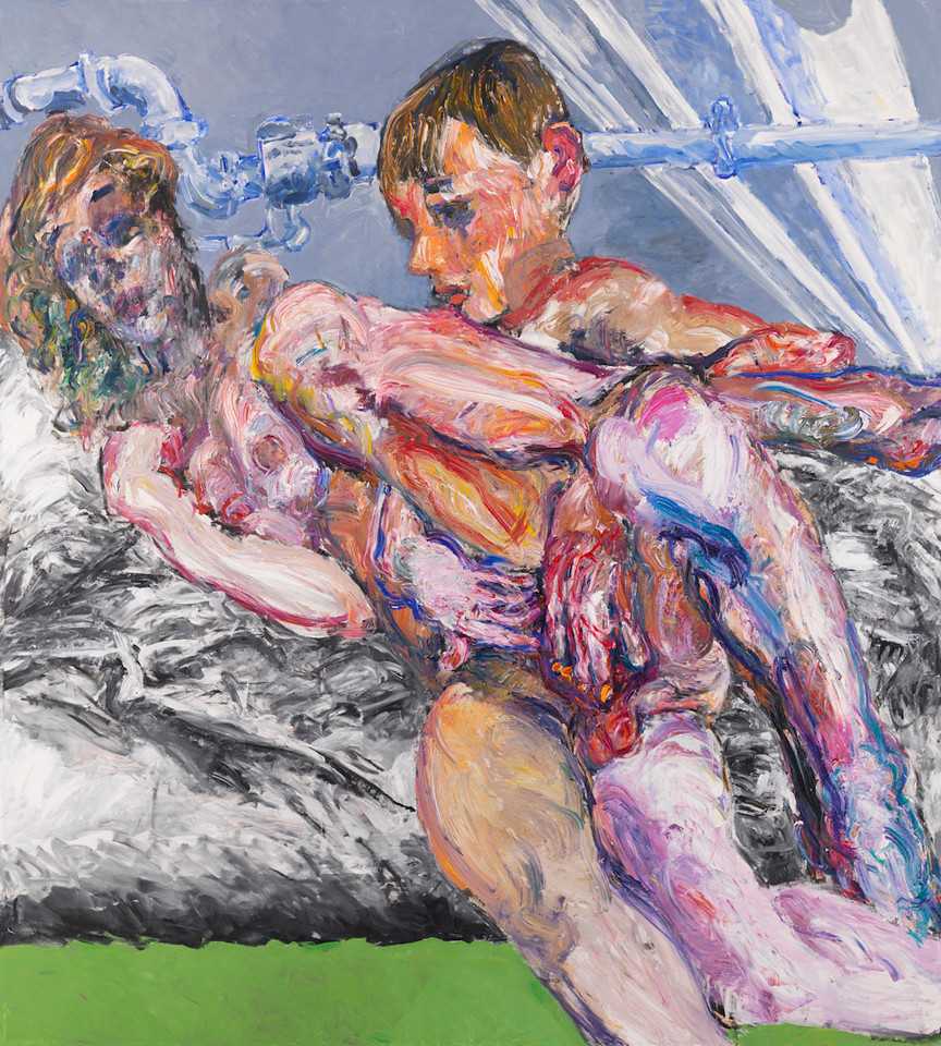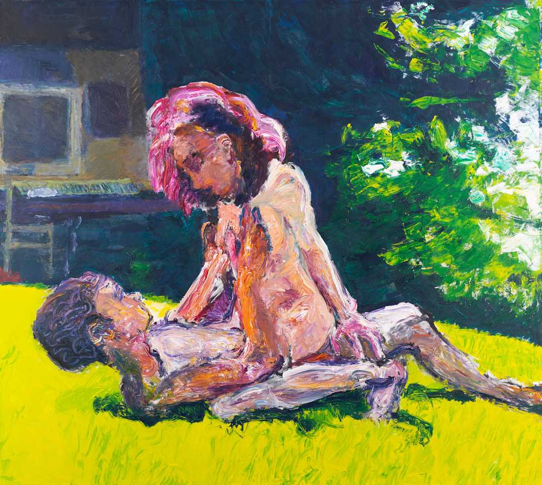 Herbert’s paintings demonstrate how we are accustomed to seeing the naked body depicted in art. In our visual culture, nudes usually appear as classically disengaged and aloof statues, as mechanical cold puppets carrying out a fake performance, or as impossible fantasies of the artist’s erotic imagination. Images of people pausing to cherish each other’s warmth and unlocking and exploring pleasure together are far less common.