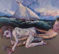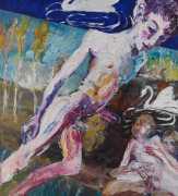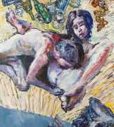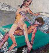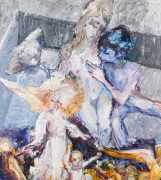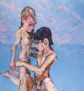 ‘Jim Herbert’s paintings of naked lovers are not for the faint of heart. At first glance, viewers might want to look away as though catching a glimpse of a couple kissing. And some people will totally avert their eyes from these intense canvases. At the opening for a recent show a young couple strolled in, saw one work, and then bolted out the door. They left because these works are not simply nudes. With today’s porn-soaked internet and sexually liberated gaze, nudity’s shock value is dismally low. Something else plays out in Herbert’s huge canvases. By depicting the tenderness between lovers, these images portray intimacy — the same emotional concept that pays therapists’ mortgages.’ Thus opens Daniel Larkin’s 2010 overview of Herbert’s work at the Hyperallergenic online magazine, all of which is worth reading here.